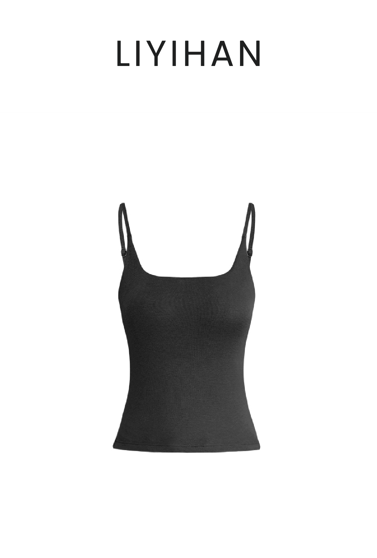 亚麻法式方领细肩带吊带2025夏季新款修身针织上衣
