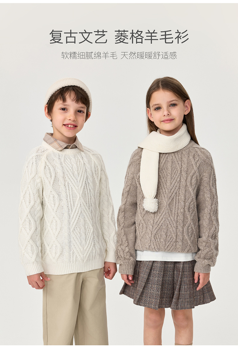 【绵羊毛】马克珍妮男童复古文艺菱格羊毛衫2025年秋冬新款551811