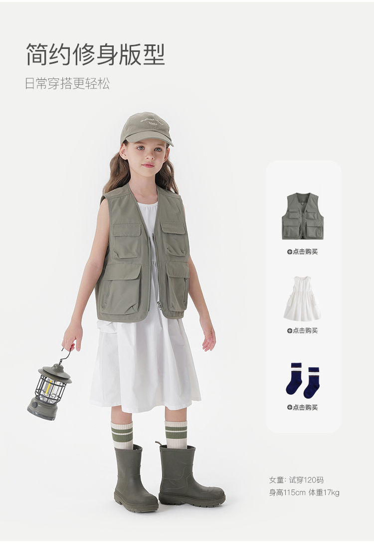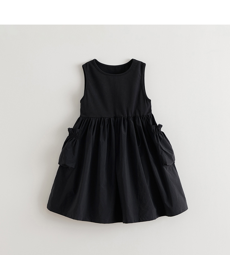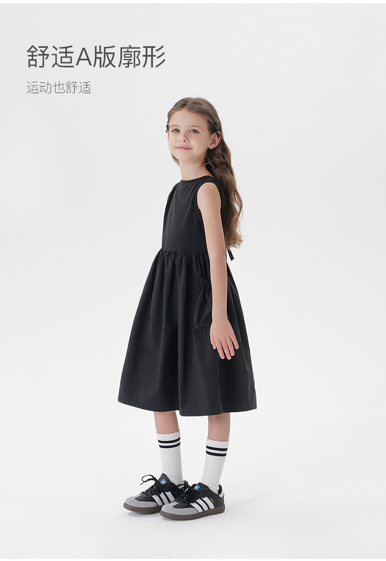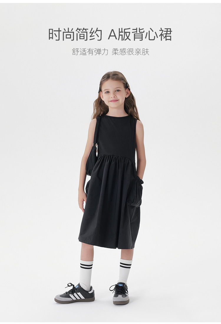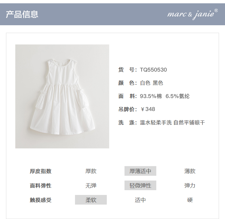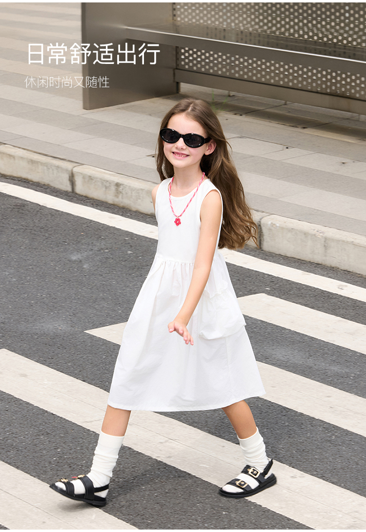 马克珍妮夏装 女童简约风花边大口袋背心裙连衣裙550530