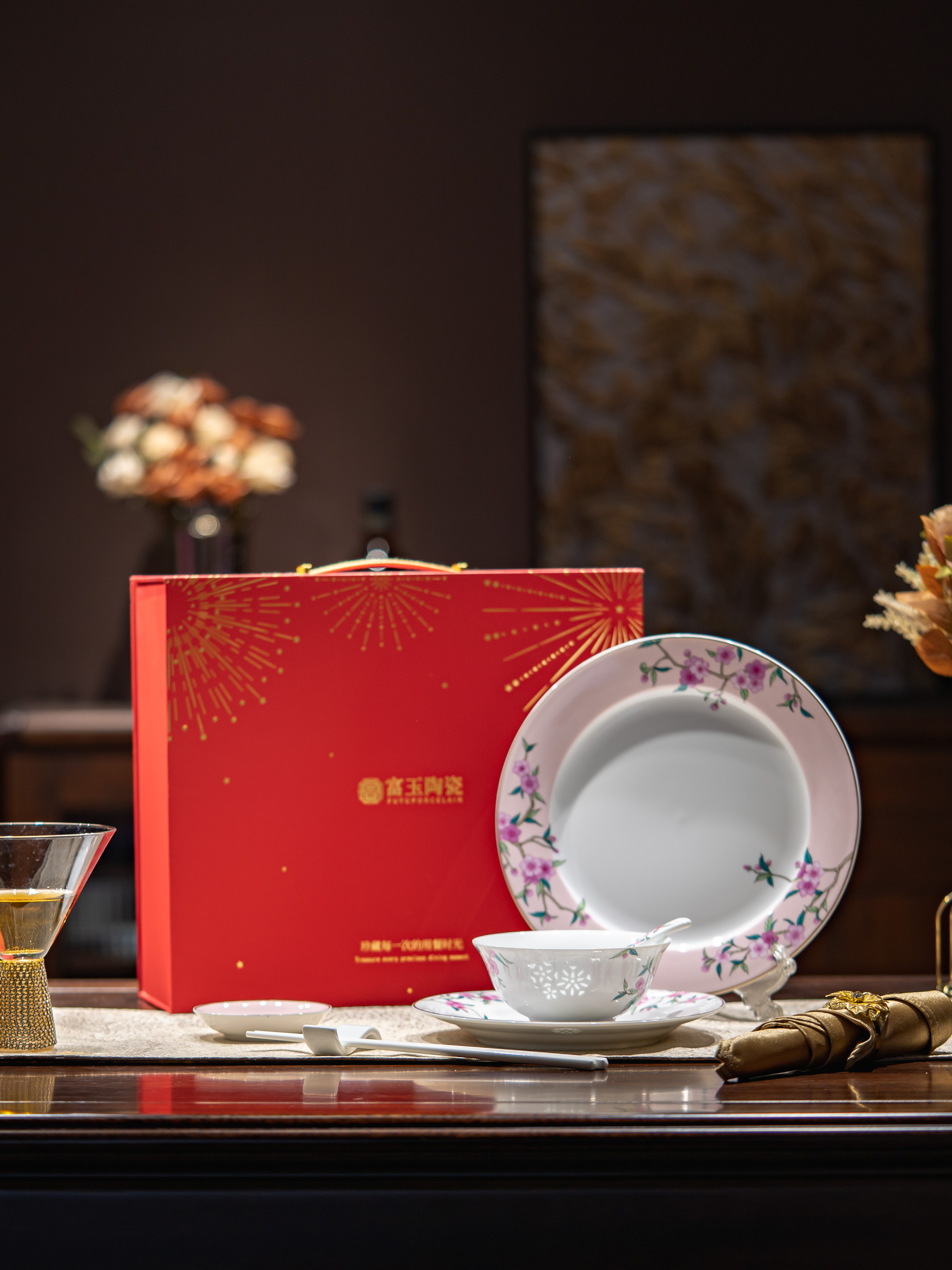 富玉陶瓷景德镇一人食家用高颜值玲珑乔迁之喜入宅搬家礼物餐具