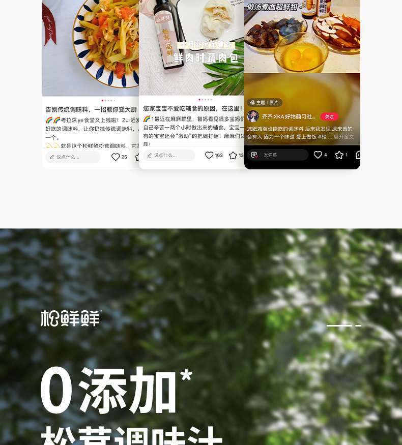 “它是自然的鲜味,配料很干净,特别适合给宝宝做辅食调味,都是大自然中的天然食材!