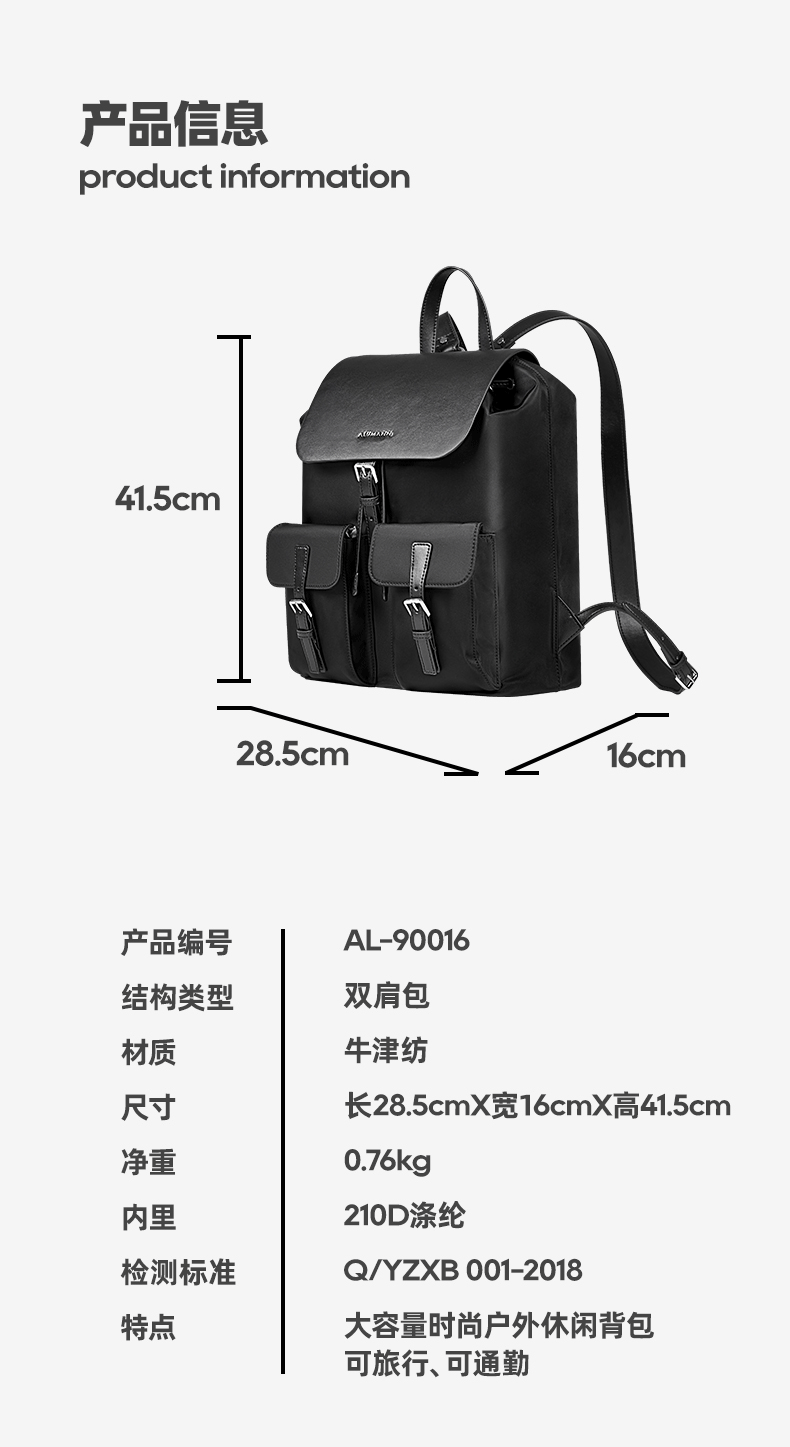 旅漫2023新款轻奢高级真皮配饰女士休闲通勤两用背包(款号AL-2016)