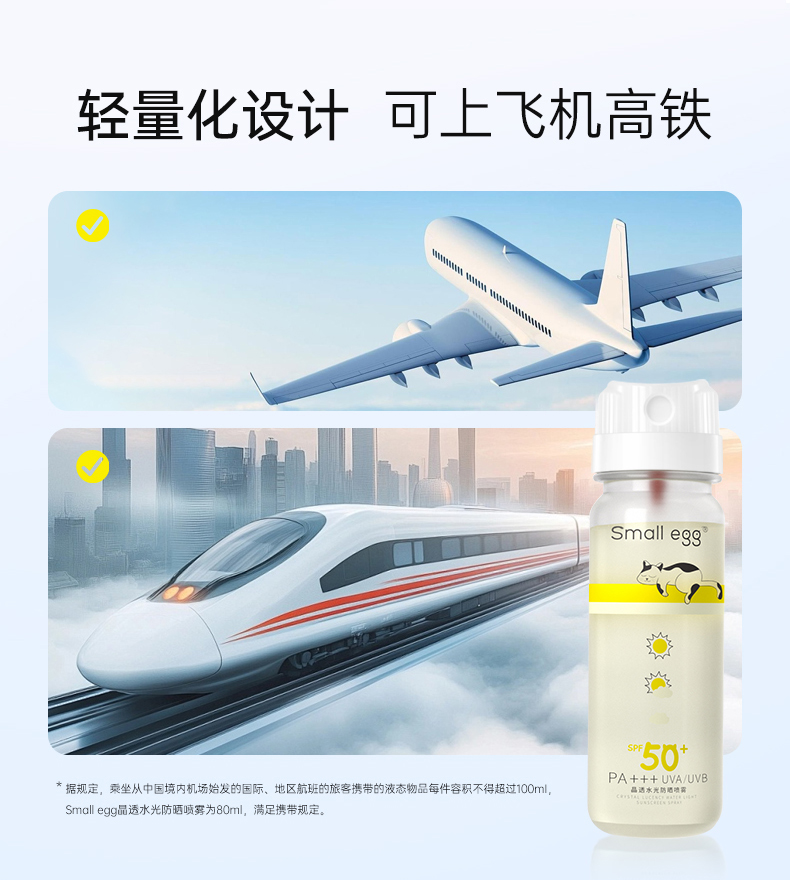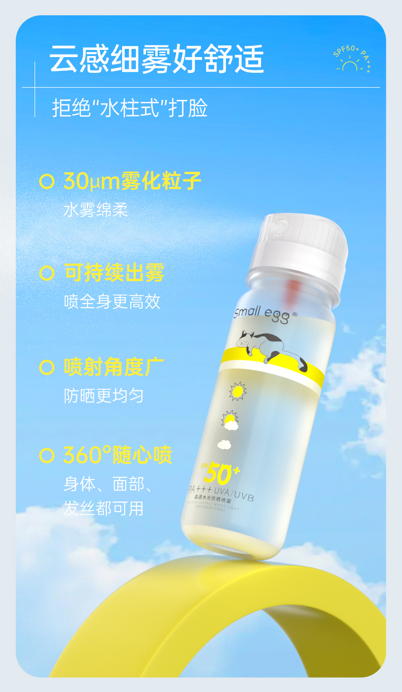 优选 | Small egg晶透水光防晒喷雾80ml+蛋蛋喷牛奶肌素颜喷雾80ml 赠防晒口罩*2