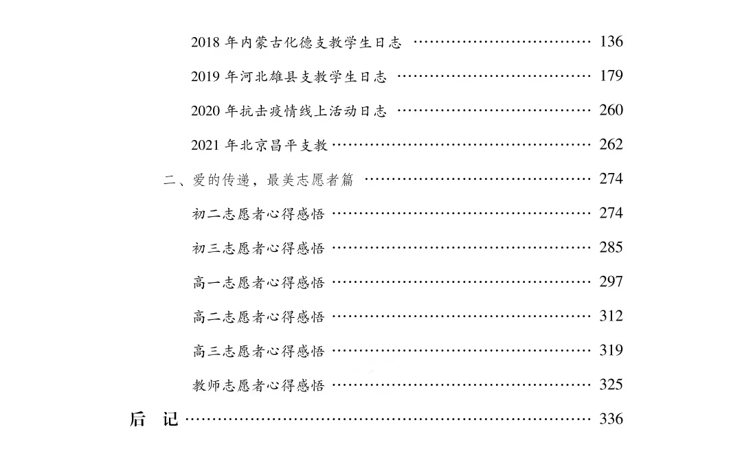 本书的出版,是在理论研究和实践创新方面开展的有益探索,是提升志愿服务机制化和长效化建设、推动志愿服务探索和实践再出发的有力举措。希望本书能成为学习志愿服务理论、传递志愿服务理念的窗口,成为推动志愿服务工作取得新发展的抓手,为提升各校志愿服务工作品质提供有益借鉴和参考。