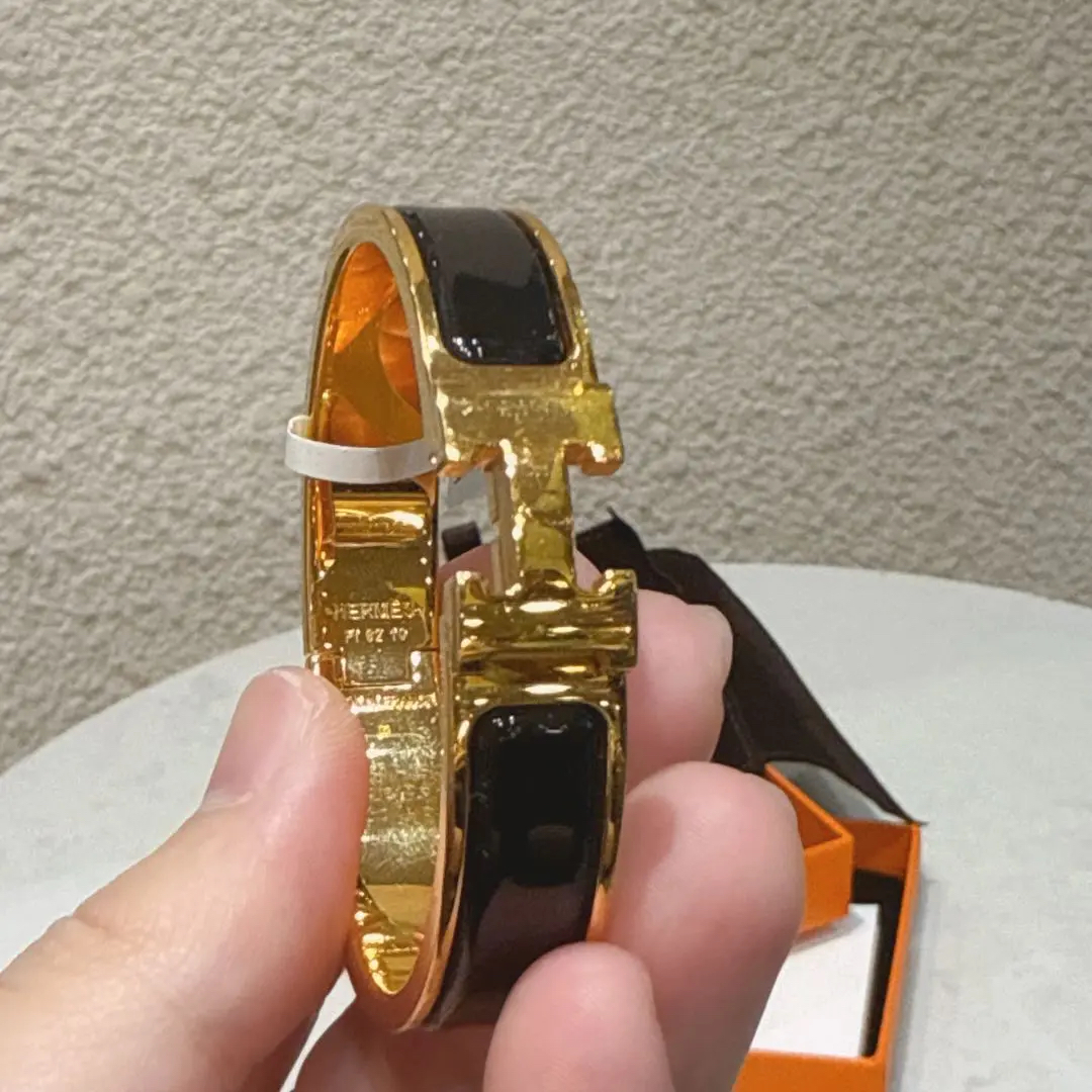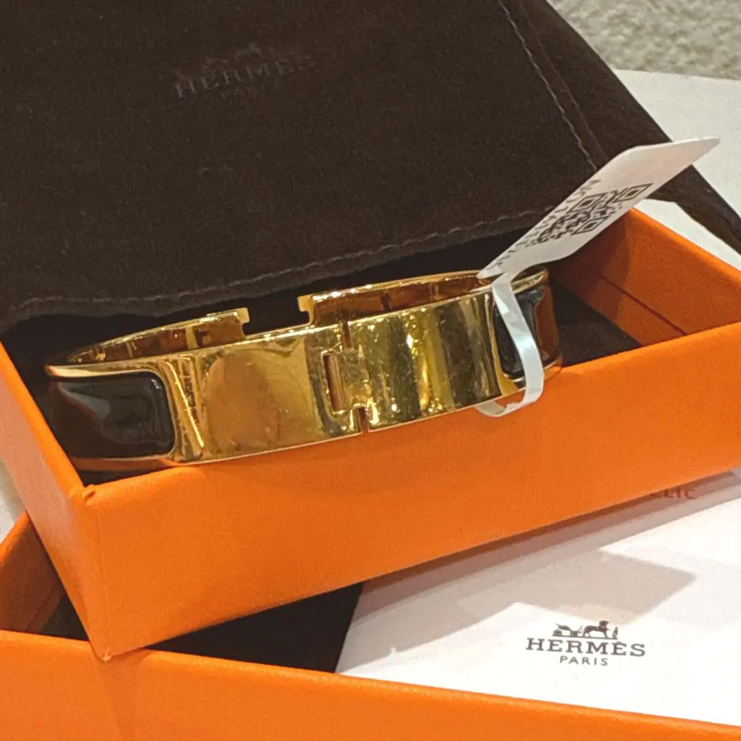 【商品详情】正品二手 Hermes ClicH 黑金 手镯🍋🟩97新 PM 5x6 配件:说明书 防尘袋 盒子。上手超级美 简单高级
