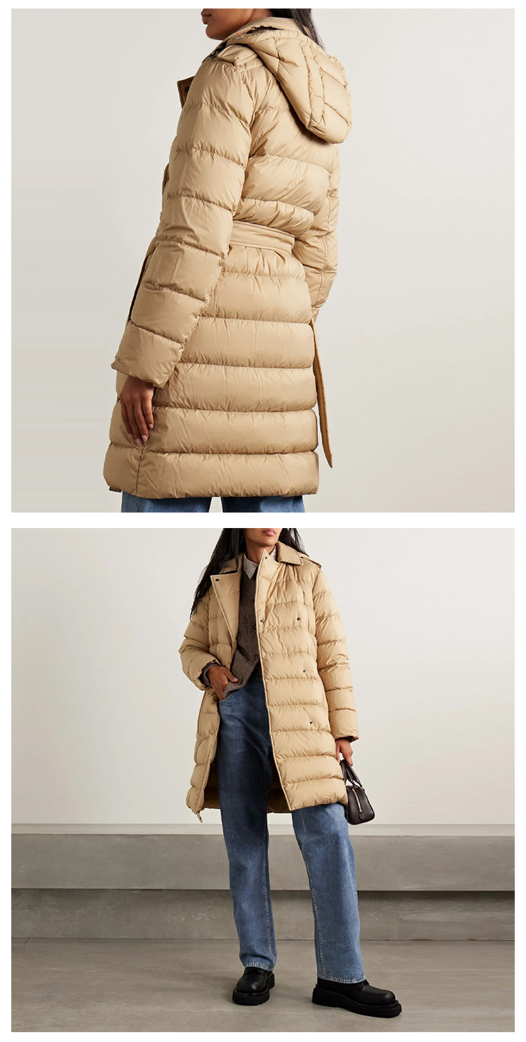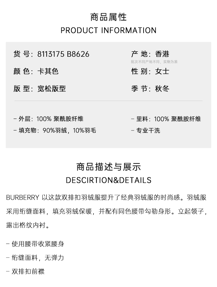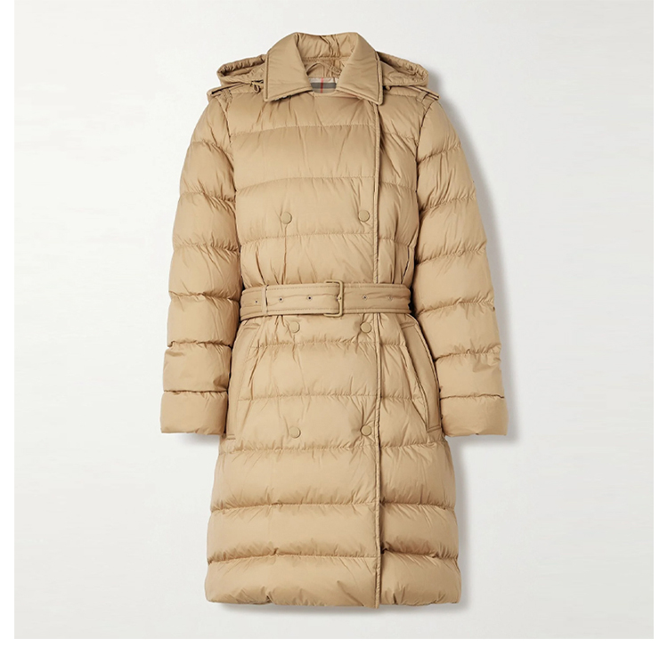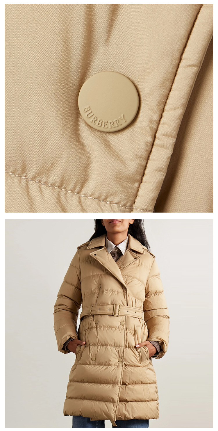 BURBERRY 巴宝莉 女士系带双排扣绗缝羽绒服 卡其色 8113175 B8626