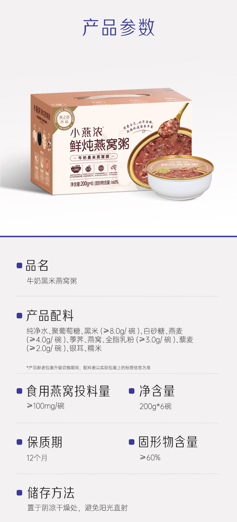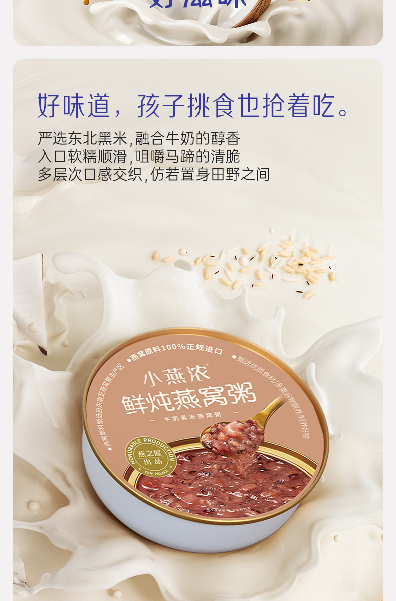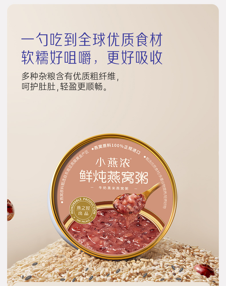 【认准旗舰店】燕之屋出品小燕浓牛奶黑米燕窝粥200g*6碗