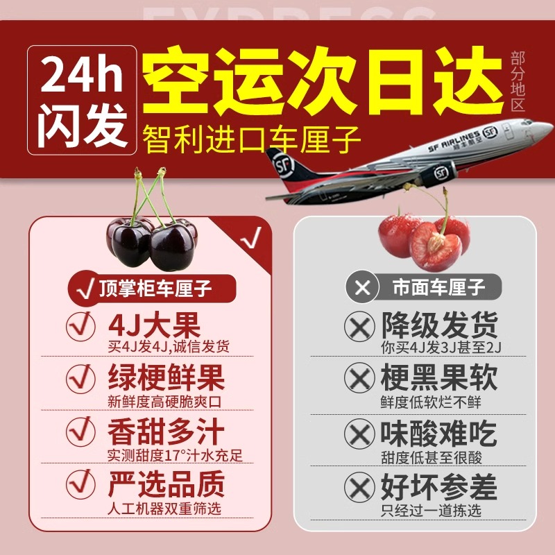 S顺丰包邮!进口智利桑提娜车厘子2J-4J*1斤/2斤/3斤/5斤