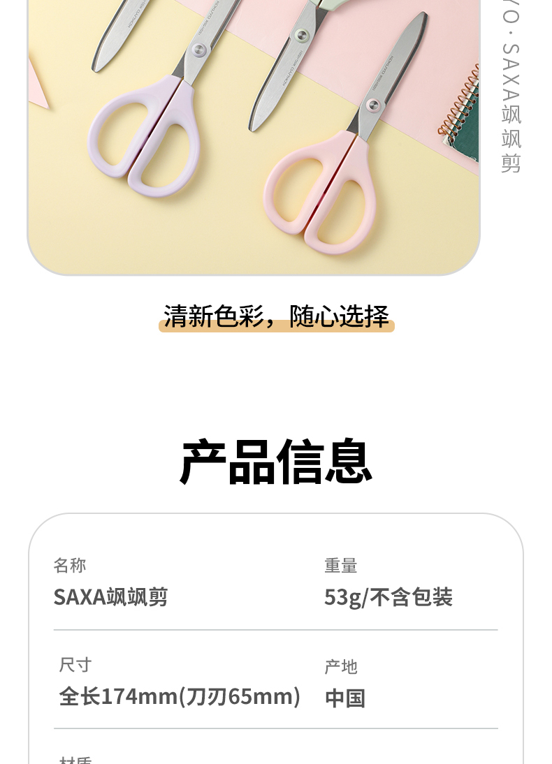 国誉SAXA 剪刀安全手工专用便携圆头安全剪刀
