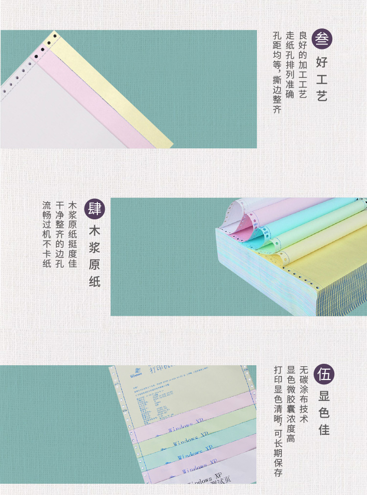 天章(TANGO)新绿天章 三联二等分撕边电脑打印纸 彩色针式打印纸(241-3-1/2S 色序:白红黄 1000页/箱)