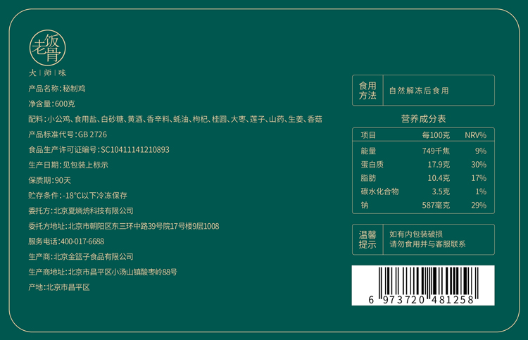 老饭骨秘制鸡约600g/只 十二道工序 十七道古法