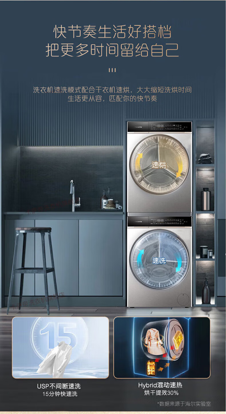 卡萨帝(Casarte)CGS 10FS7EU1干衣机 3D透视烘干 热泵烘干