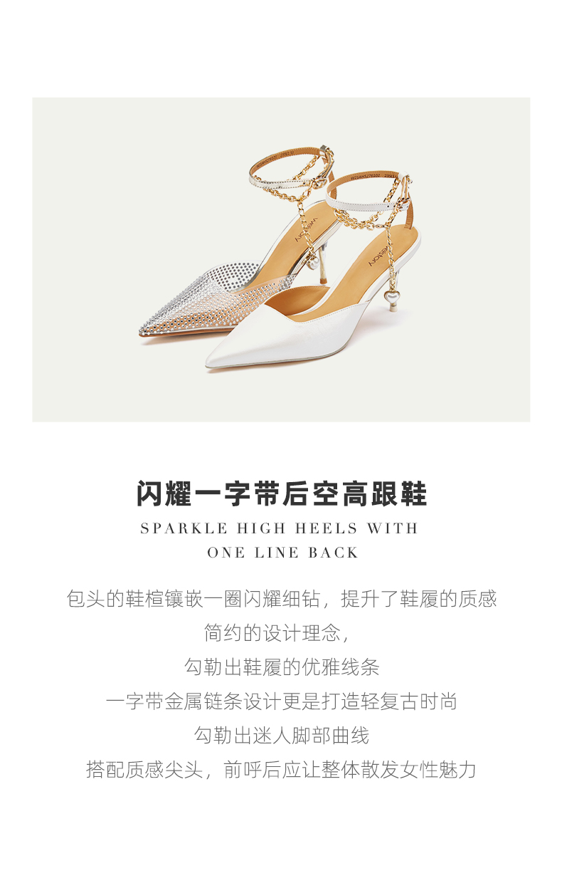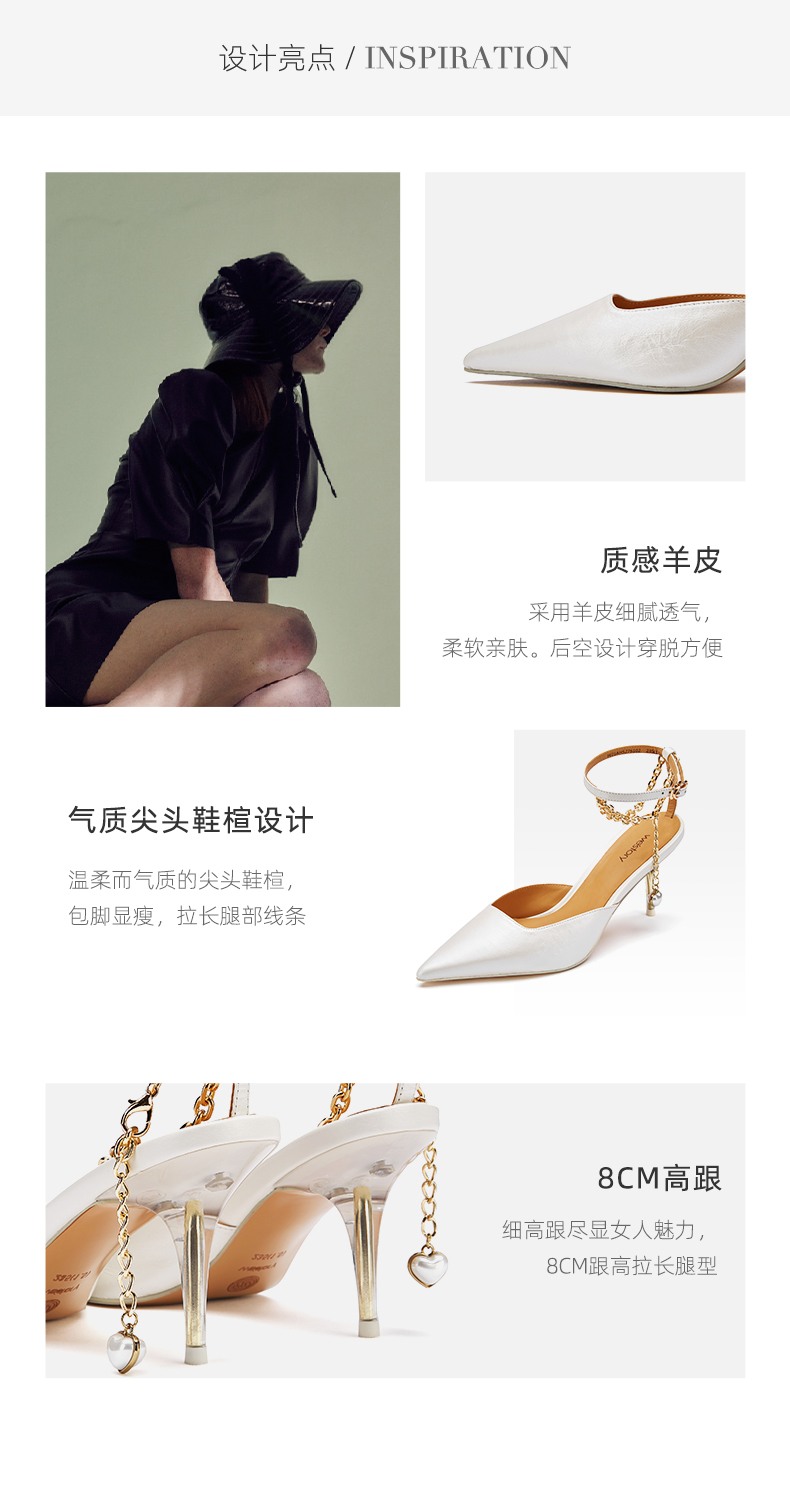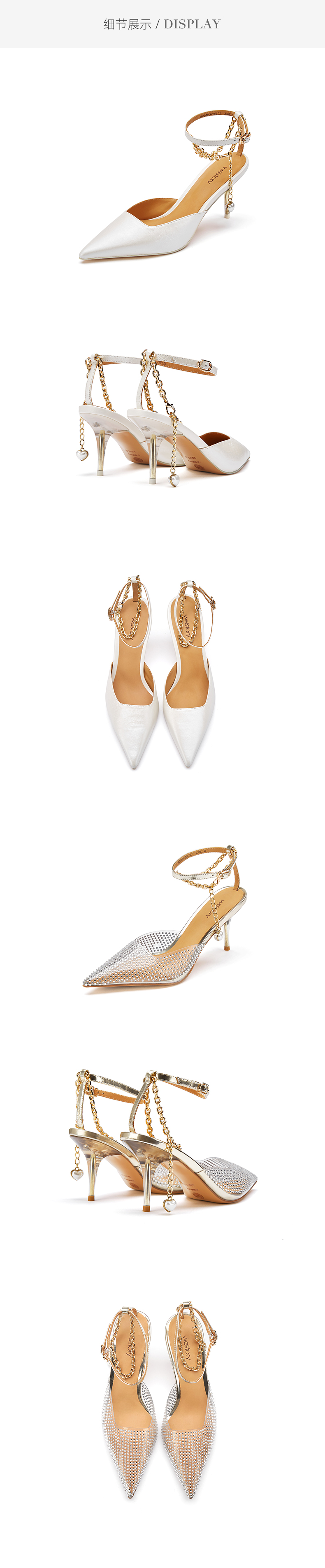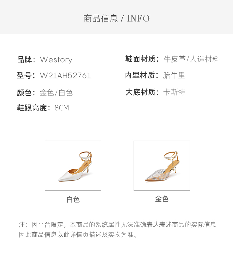 westory女鞋2021夏季新款包头尖头高跟细跟一字带凉鞋W21AH52761