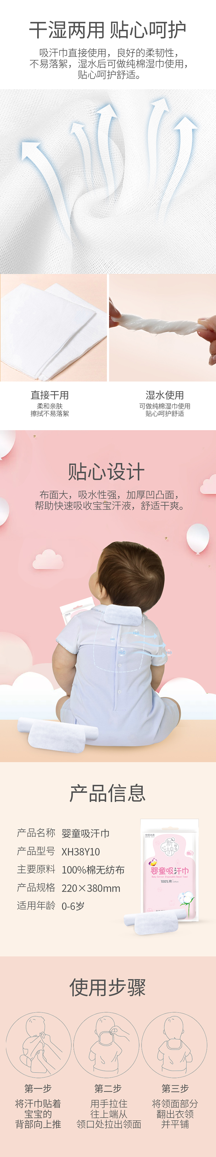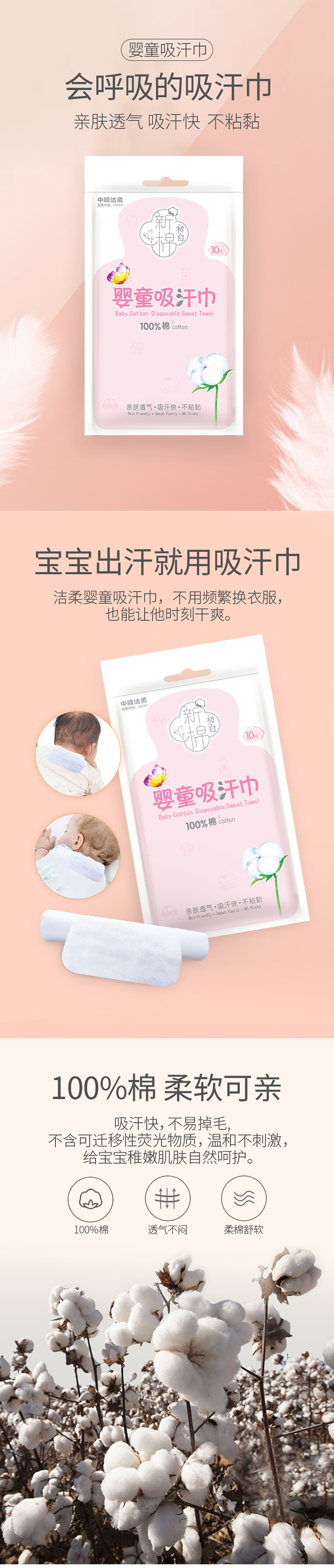 洁柔新棉初白纯棉吸汗巾10片装(婴童款)