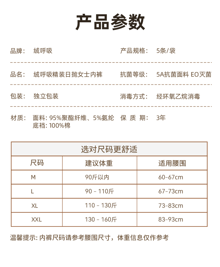 5A级抗菌!绒呼吸一次性内裤女纯棉 自由无束缚 独立包装