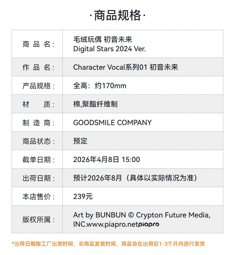 【GSC预售定金】毛绒玩偶 初音未来 Digital Stars 2024 Ver.