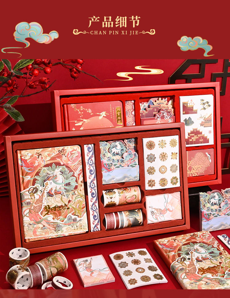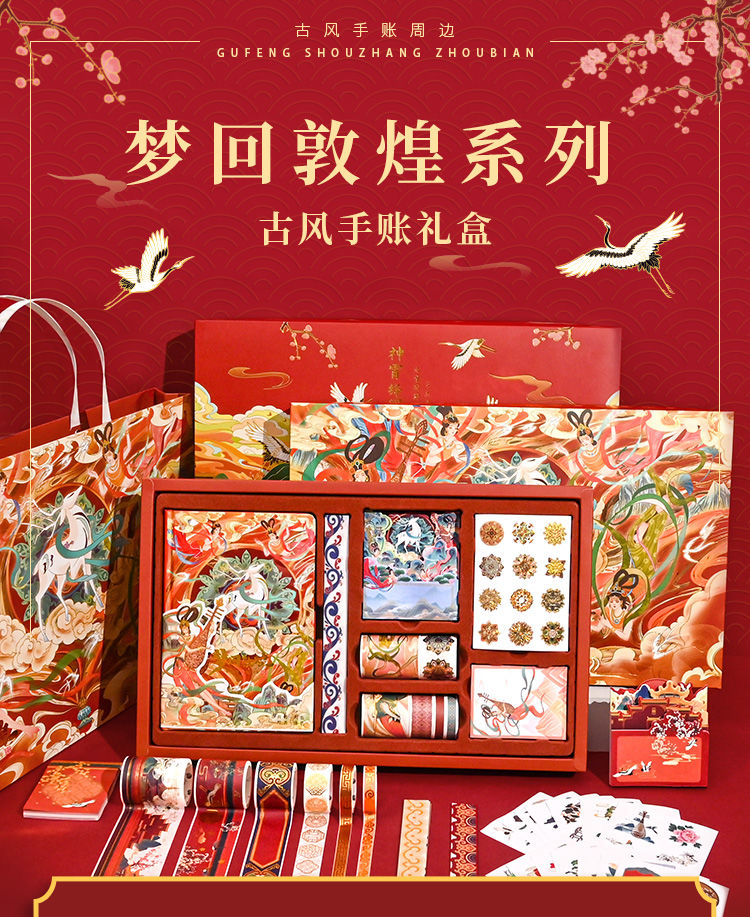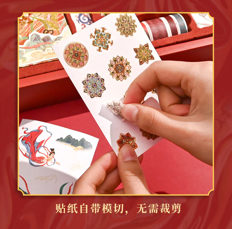 敦煌贴纸手帐本古风国潮手帐礼盒一整套复古手账本贴纸学生礼物