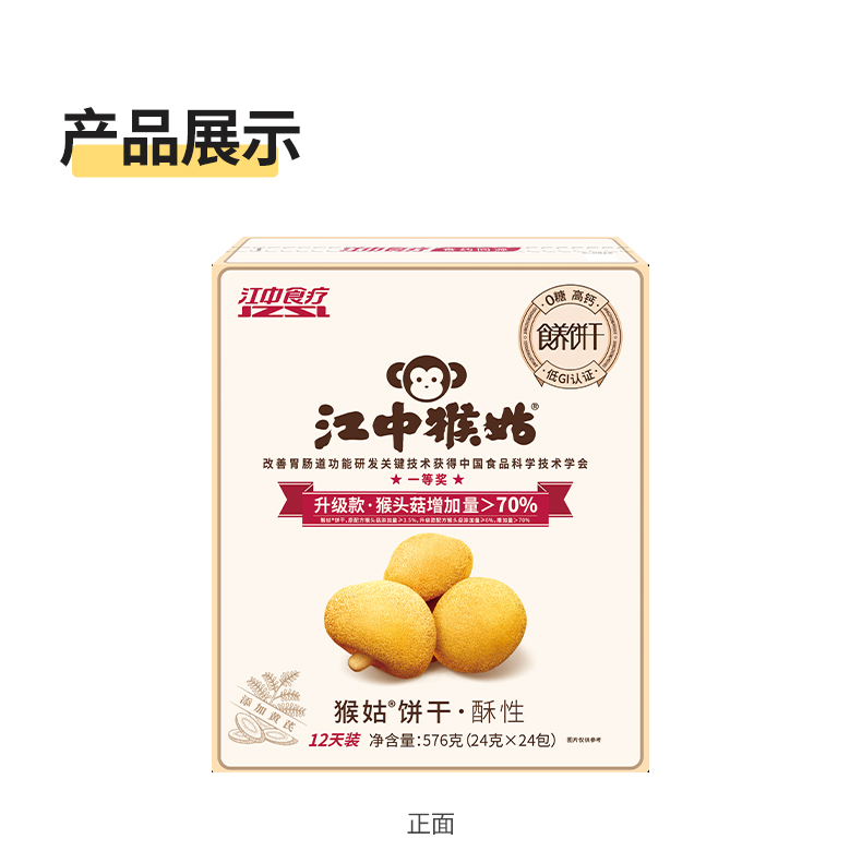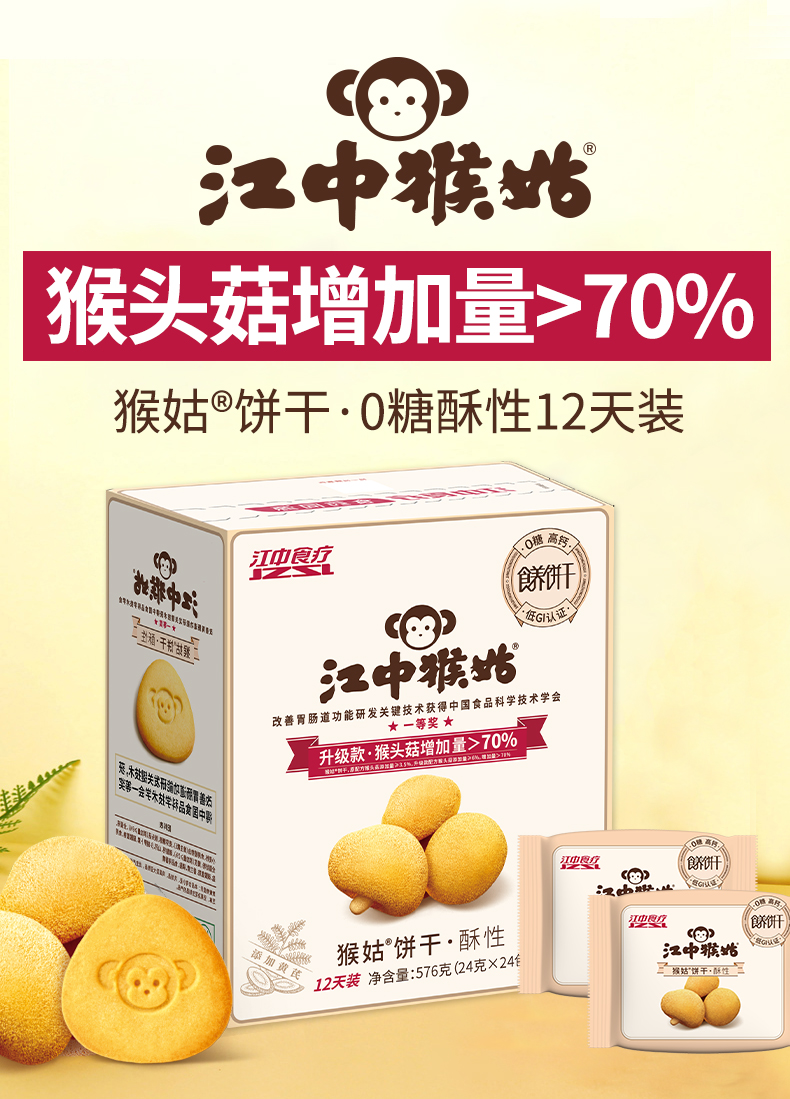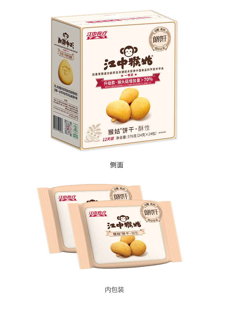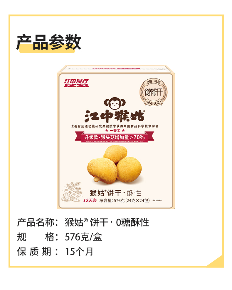 江中猴姑猴姑0糖酥性饼干576g(添加黄芪) 24包/盒 0蔗糖酥性 养胃酥性饼干 猴头菇养胃代餐 早餐零食送礼 保质期到26年8月【饼干易碎 | 介意慎拍】