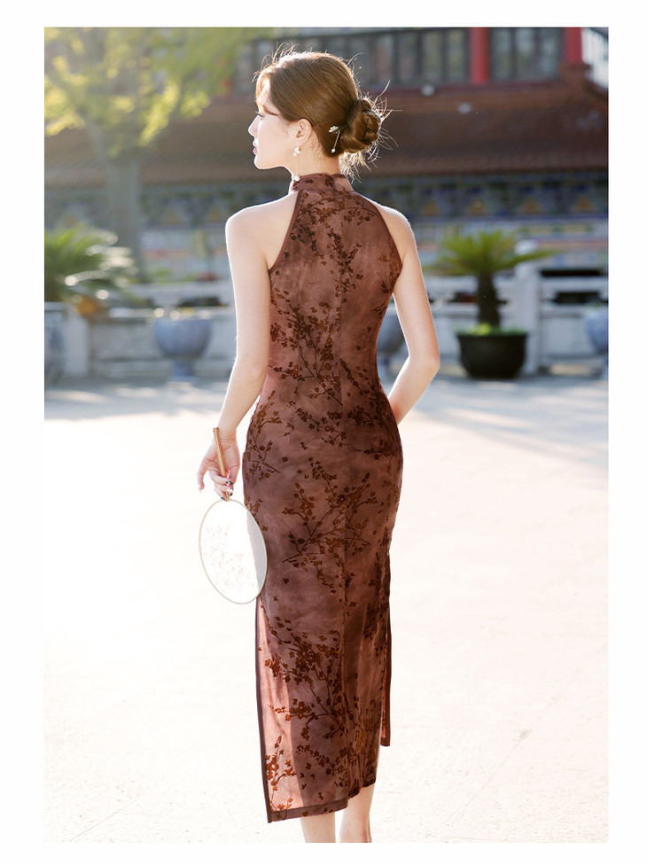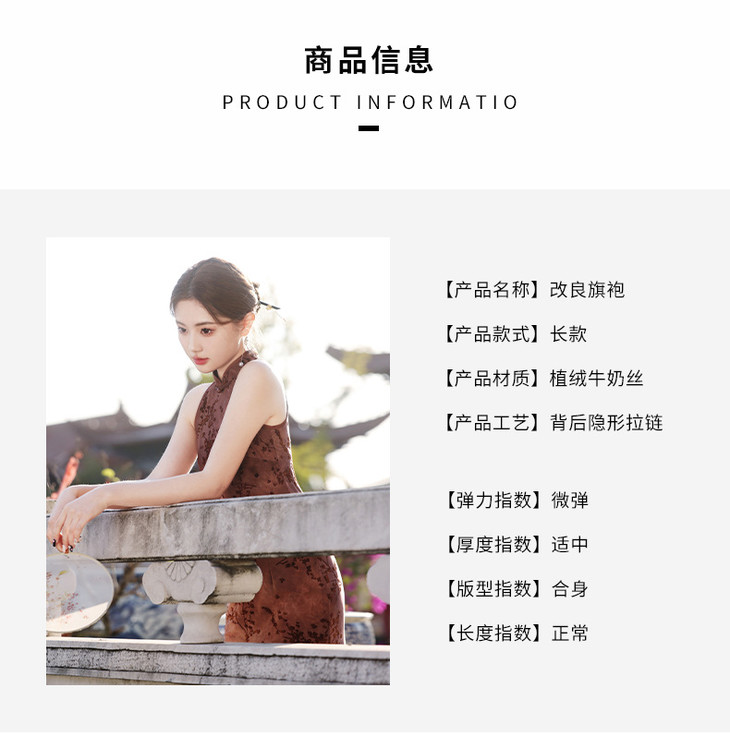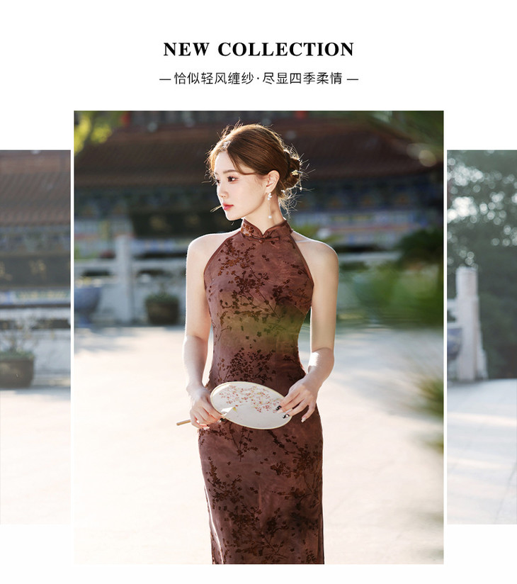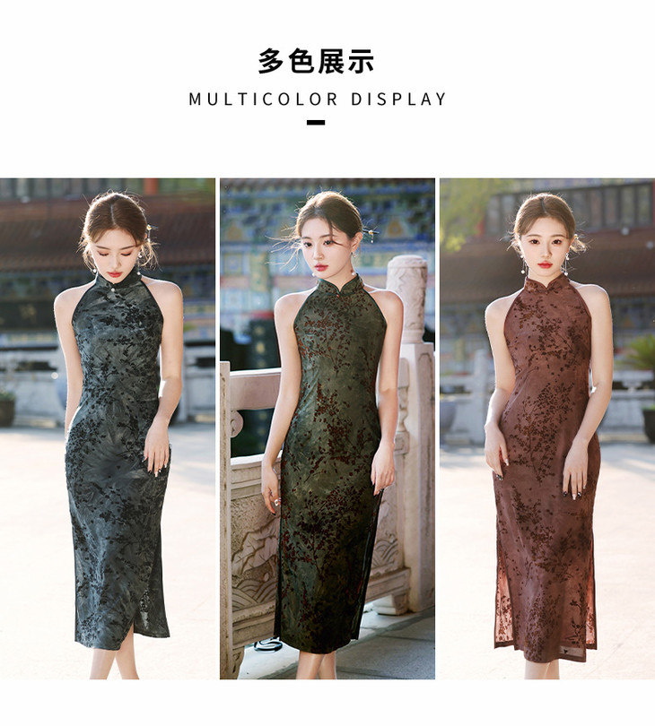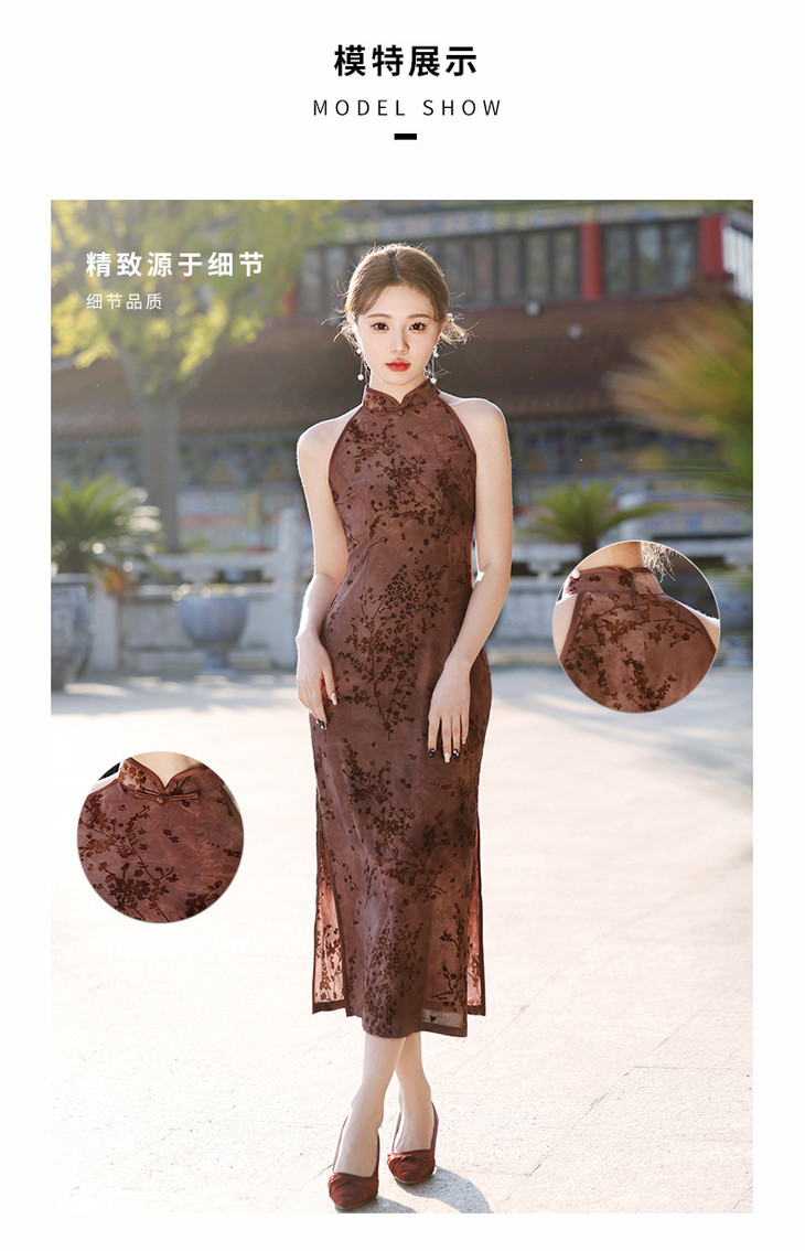 【踏雪寻梅】春夏新中式旗袍,挂脖植绒牛奶丝包臀连衣裙YG2321