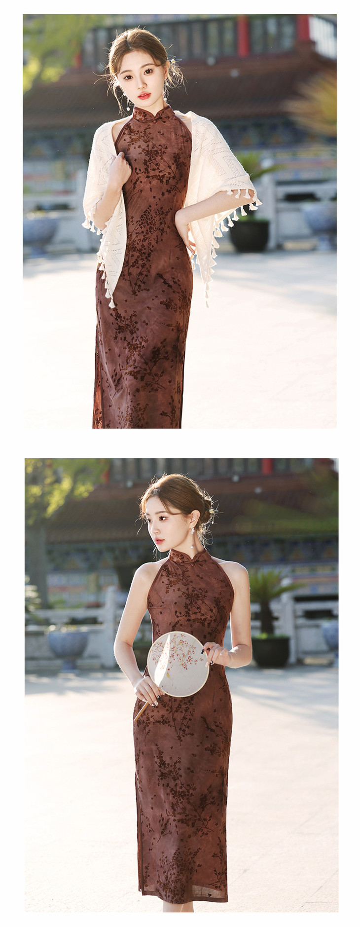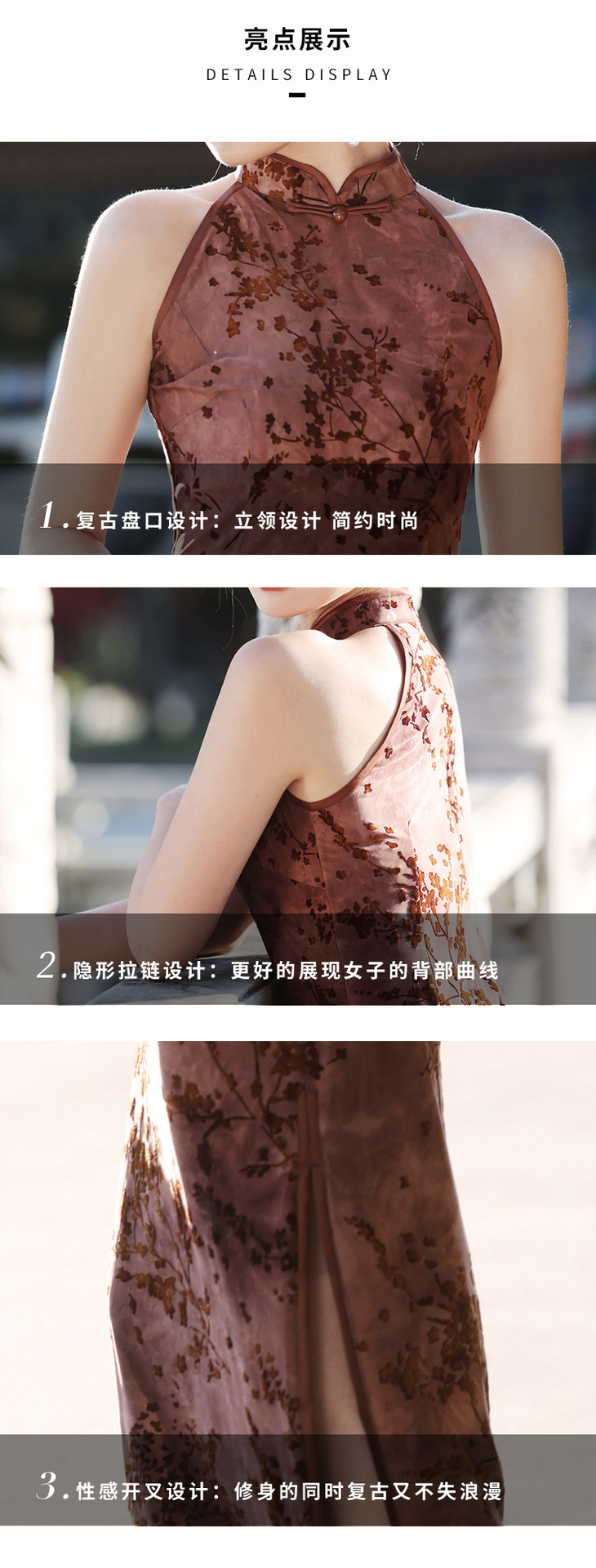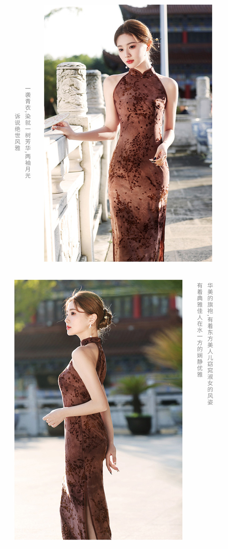 【踏雪寻梅】春夏新中式旗袍,挂脖植绒牛奶丝包臀连衣裙YG2321
