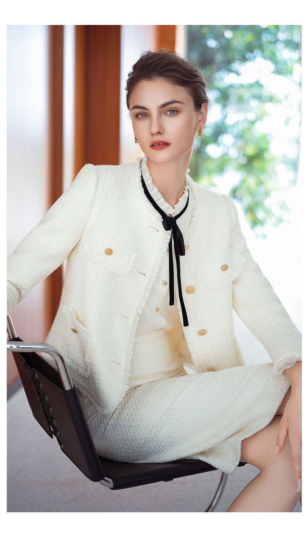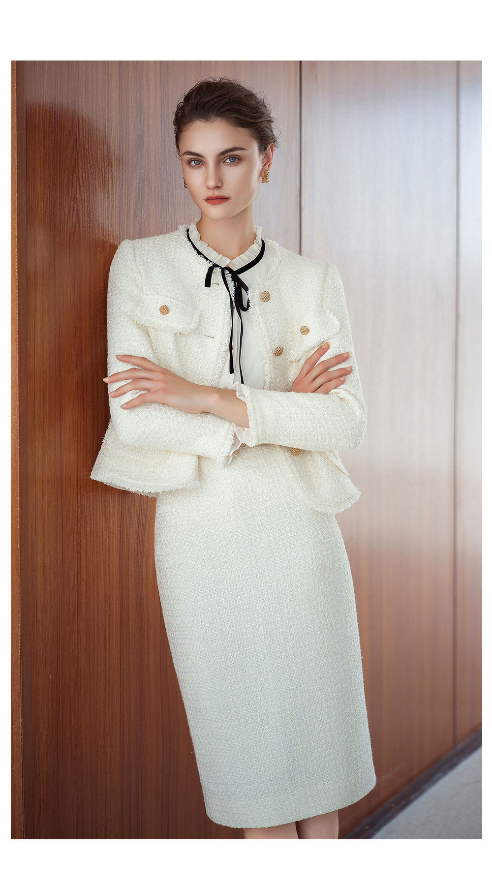 IWY/小香风西装套裙女高级感米白色通勤职业装美容院工作服正装CS2550