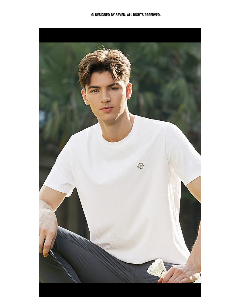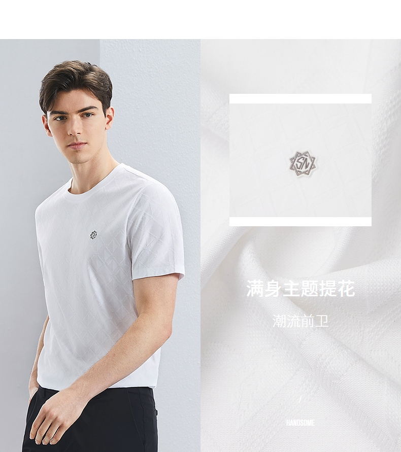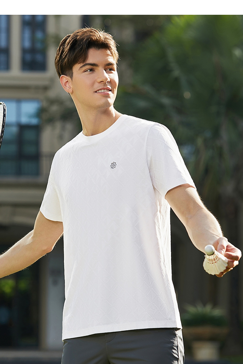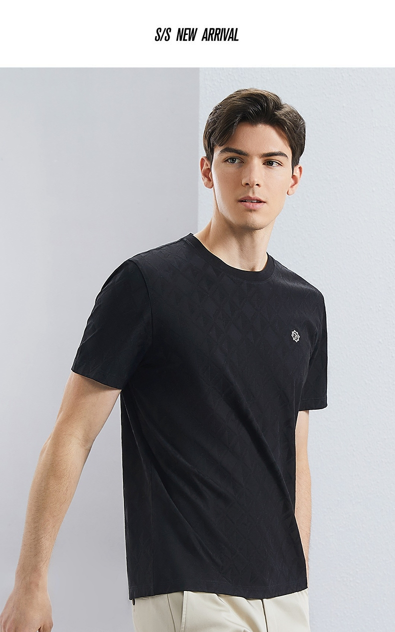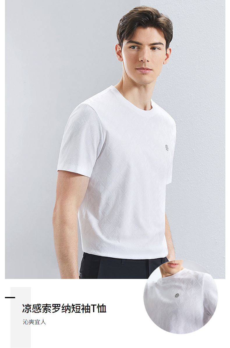 【凉感索罗纳】柒牌圆领短袖T恤男夏季新款时尚满身提花休闲上衣 126T72190