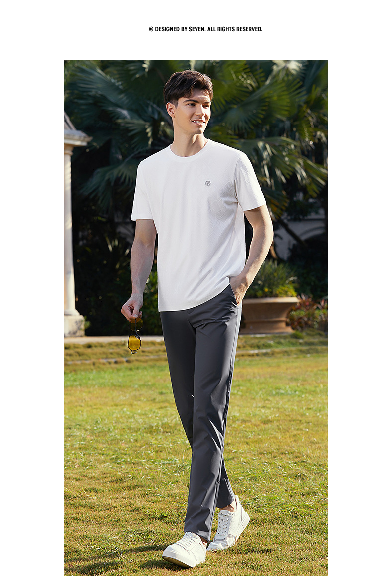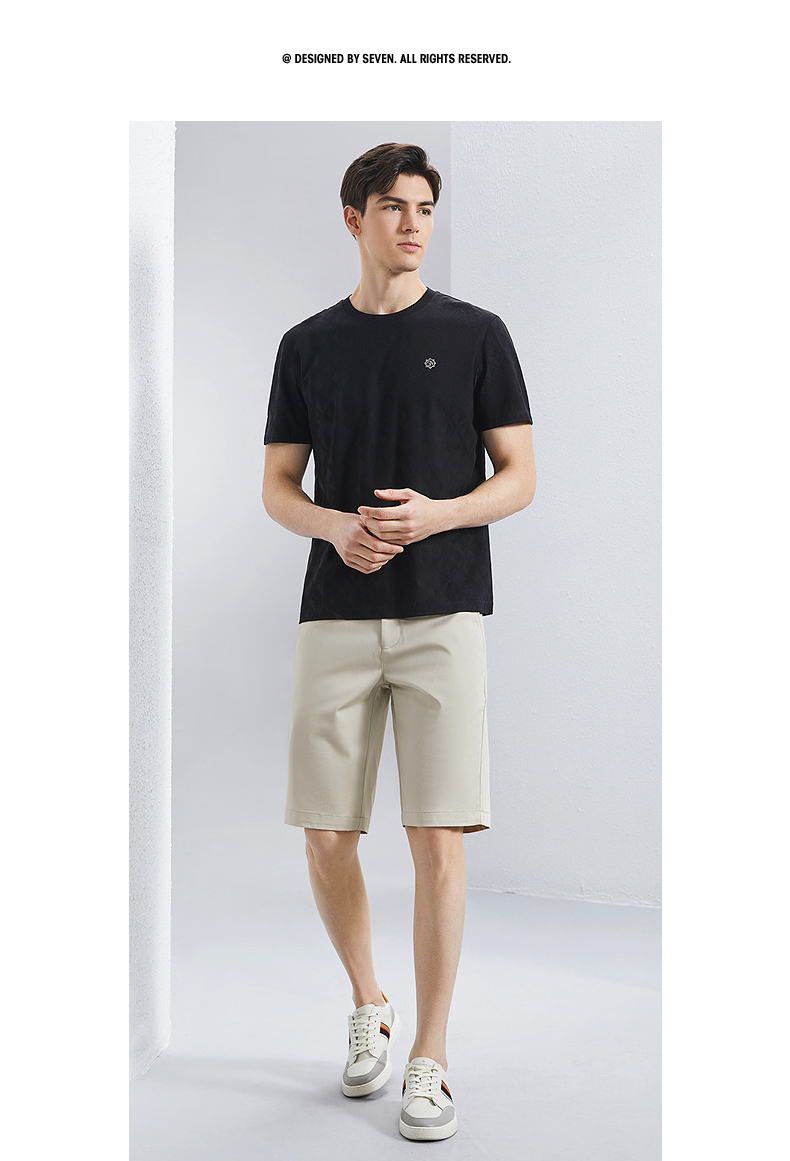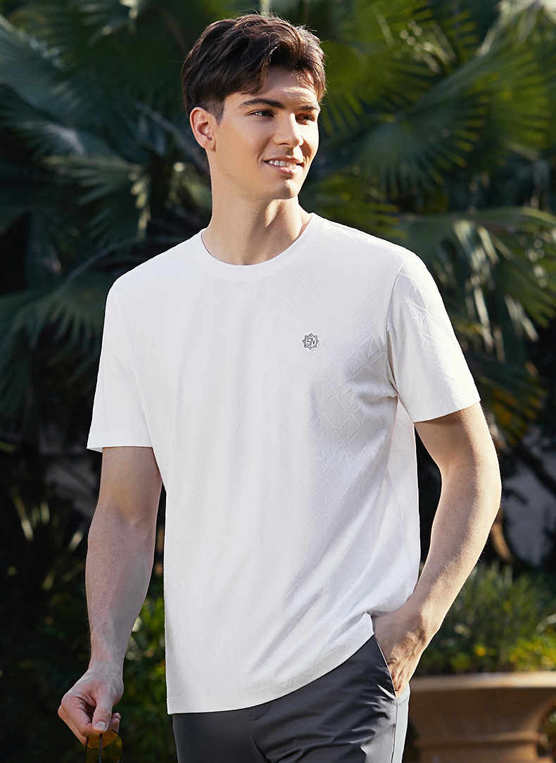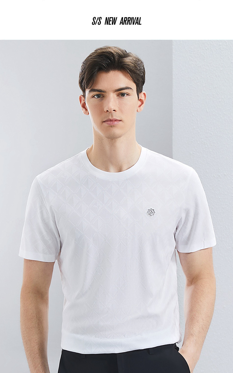 【凉感索罗纳】柒牌圆领短袖T恤男夏季新款时尚满身提花休闲上衣 126T72190