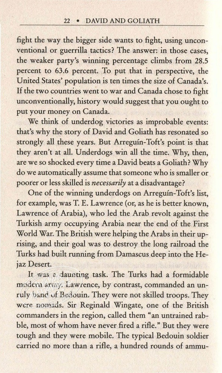 In David and Goliath, Malcolm Gladwell challenges how we think about obstacles and disadvantages, offering a new interpretation of what it means to be discriminated against, or cope with a disability, or lose a parent, or attend a mediocre school, or suffer from any number of other apparent setbacks.