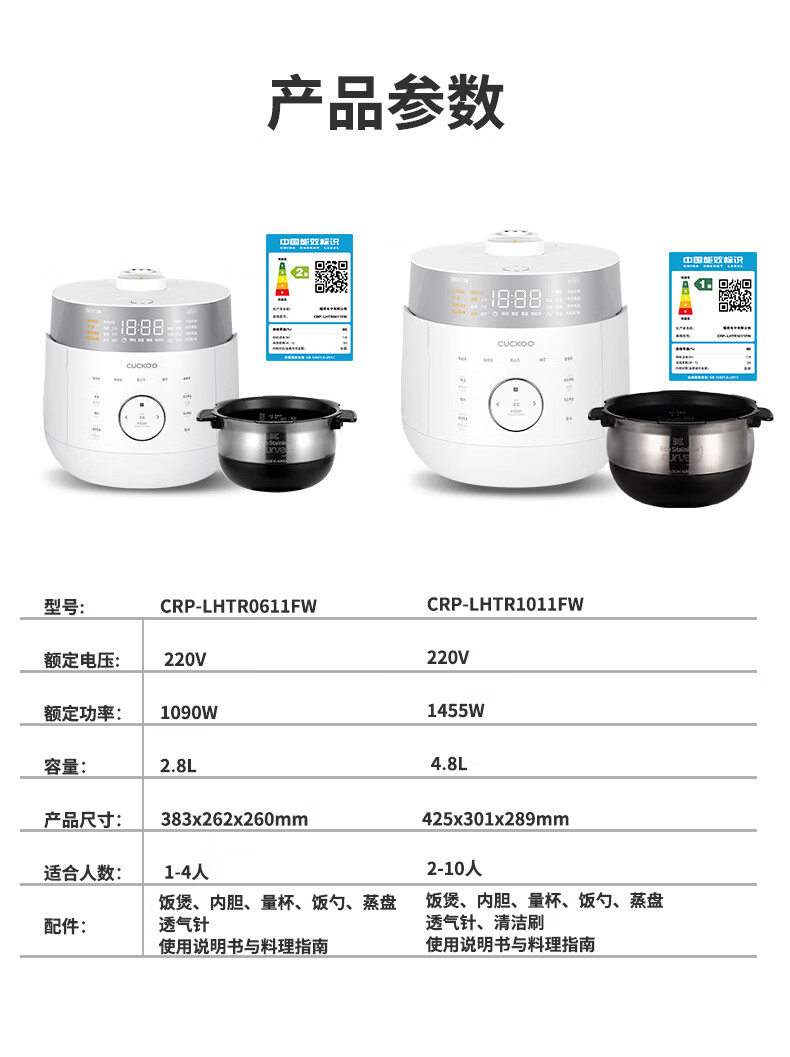 福库双变压力IH饭煲CRP-LHTR1011FW