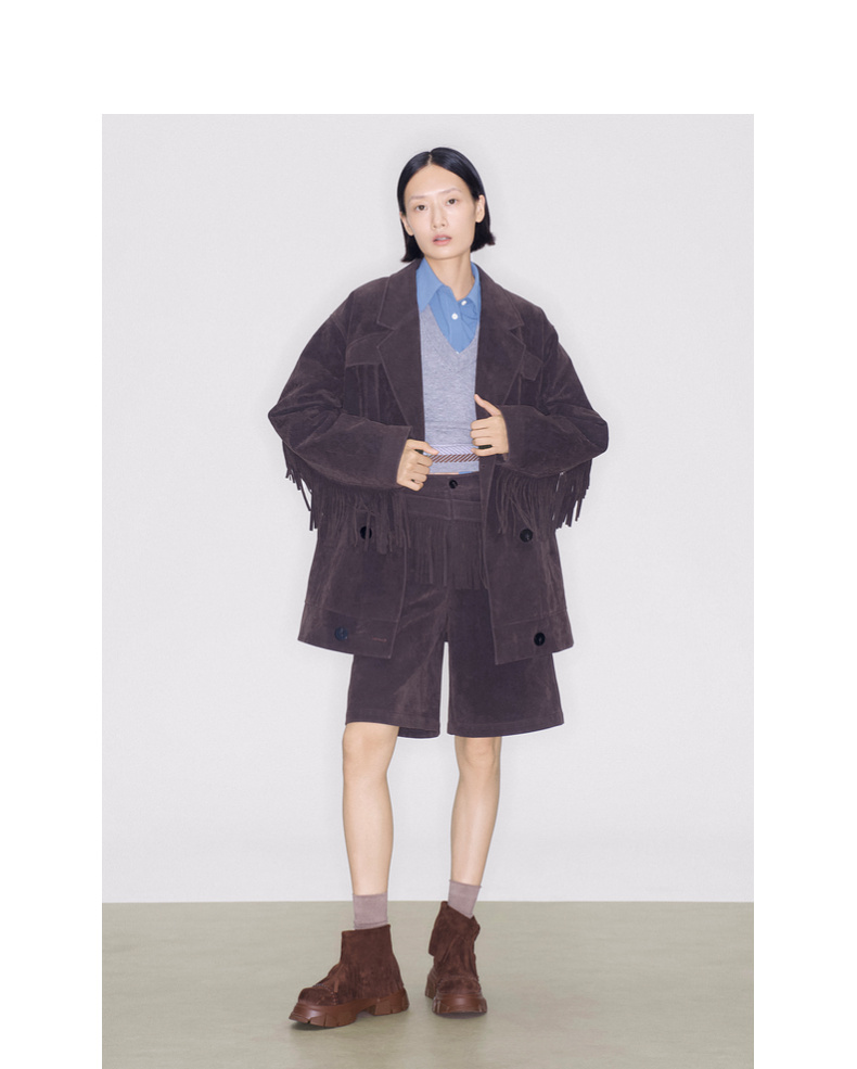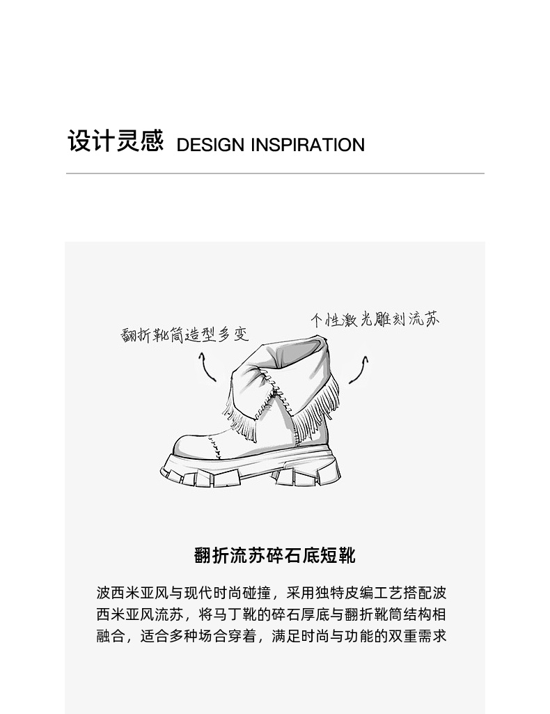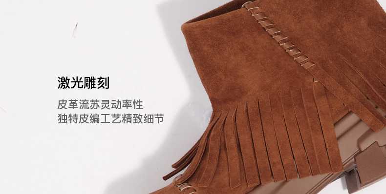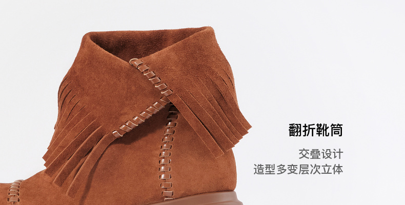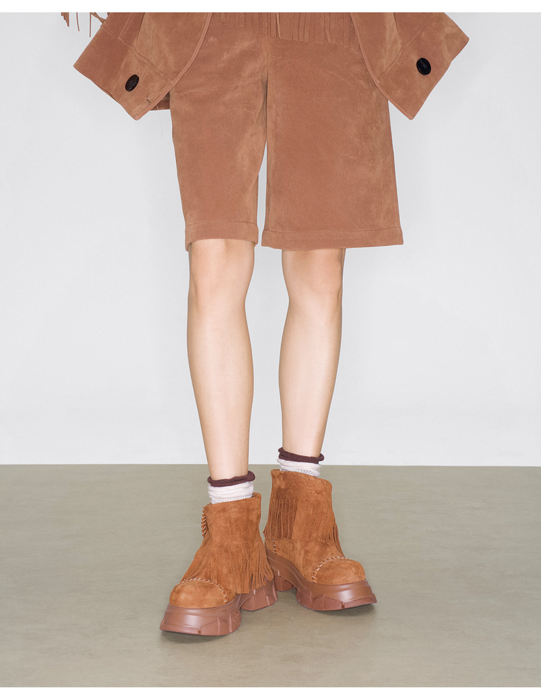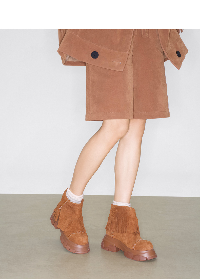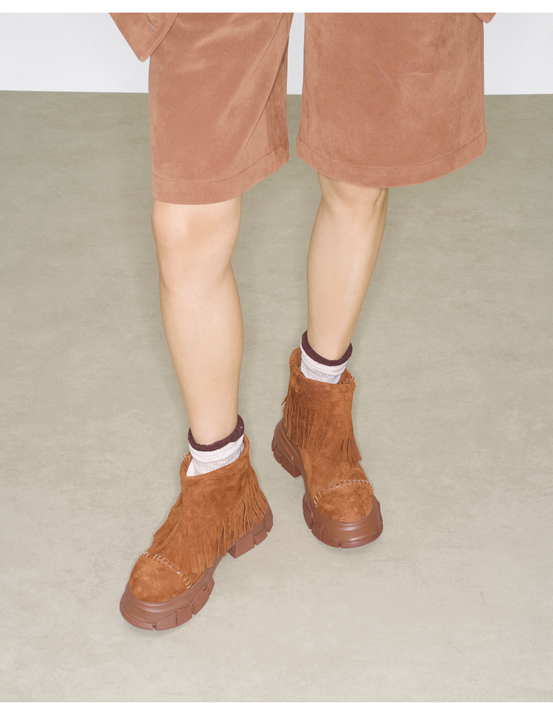 lost in echo2025早秋新款仿麂皮波西米亚风流苏厚底碎石底短靴子