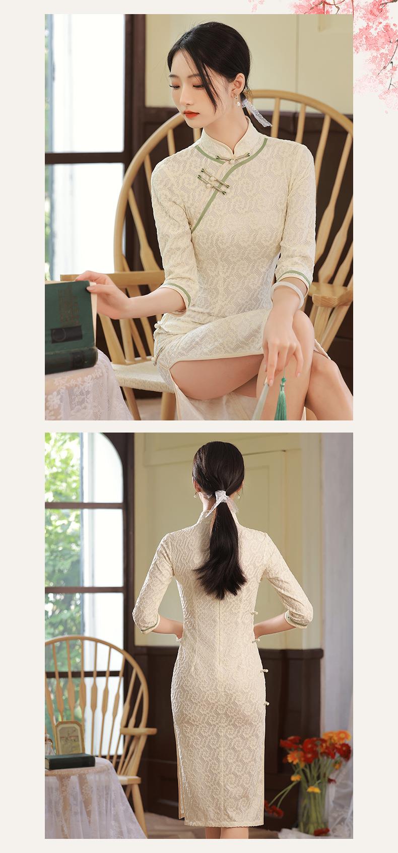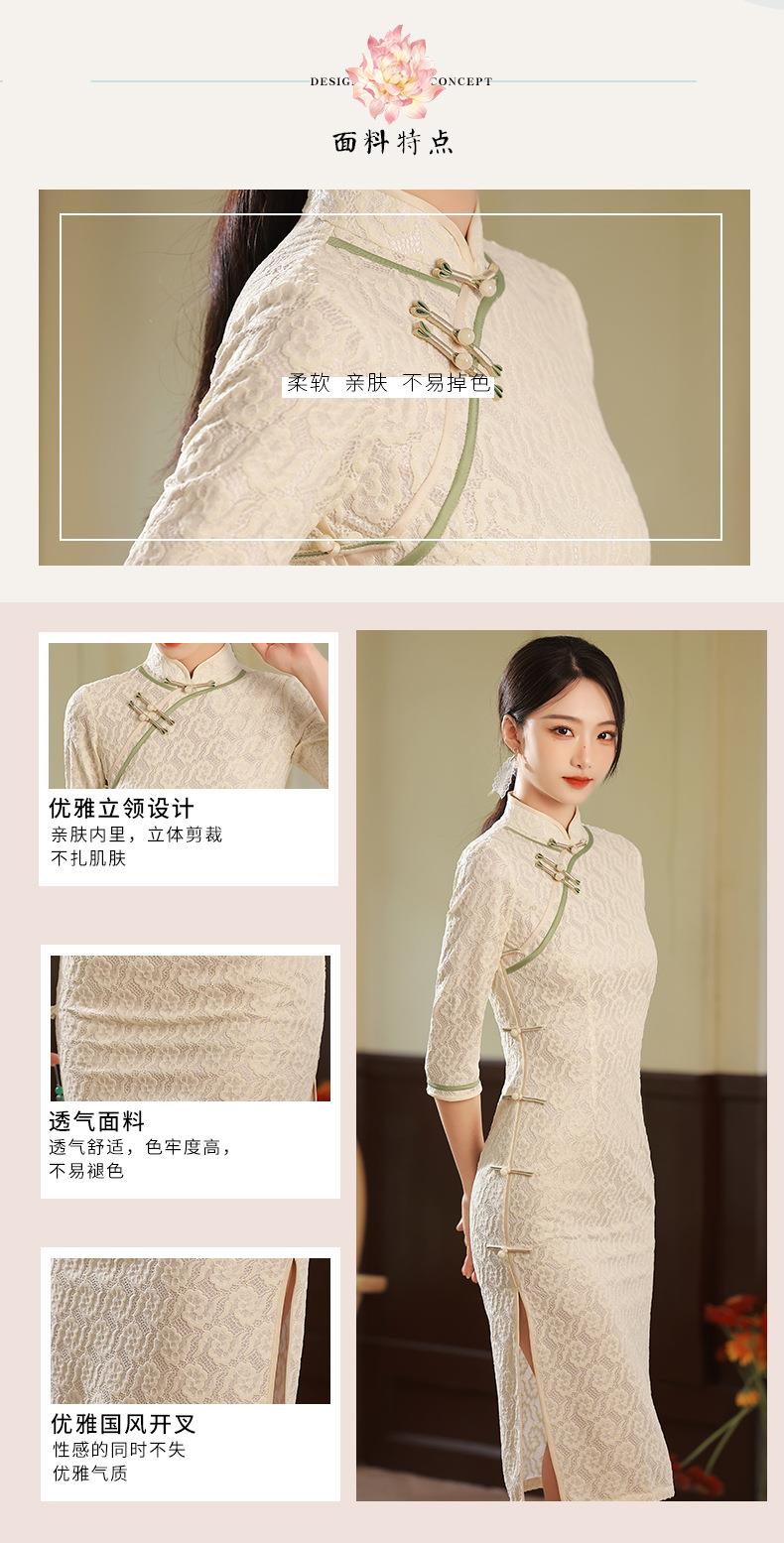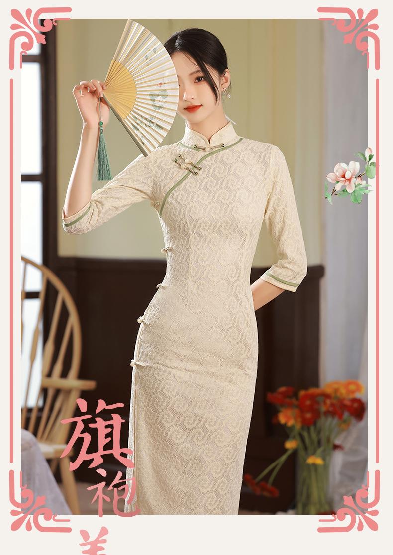 2023秋季新款雪尼尔蕾丝复合侧八扣旗袍连衣裙复古改良年轻少女款