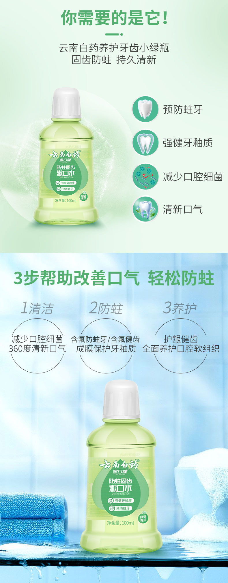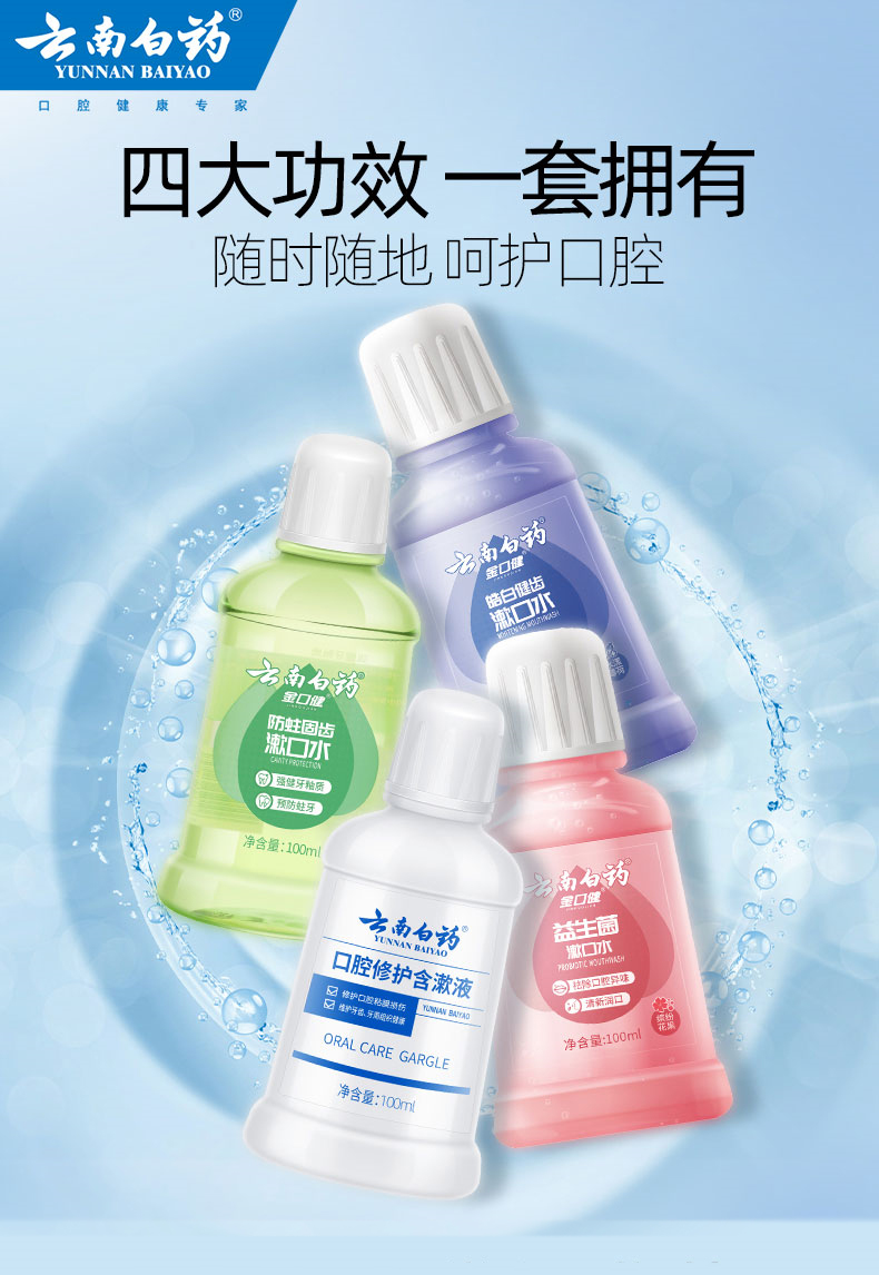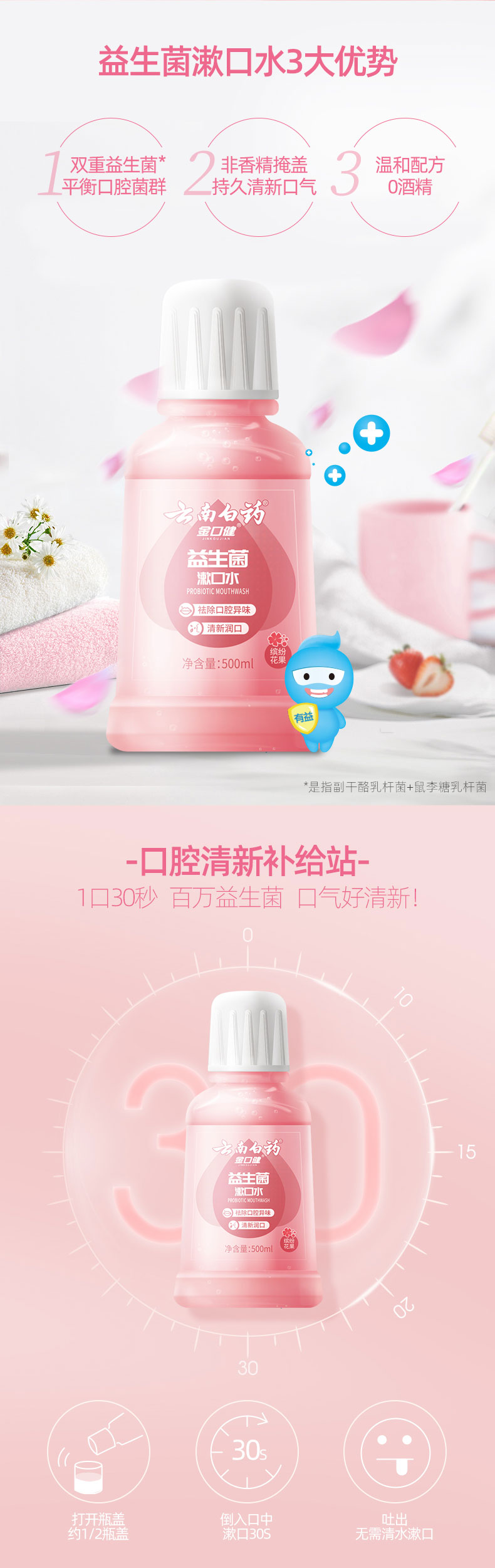 【官方正品】云南白药金口健防蛀固齿漱口水清新口气固齿防蛀精准含氟益生菌