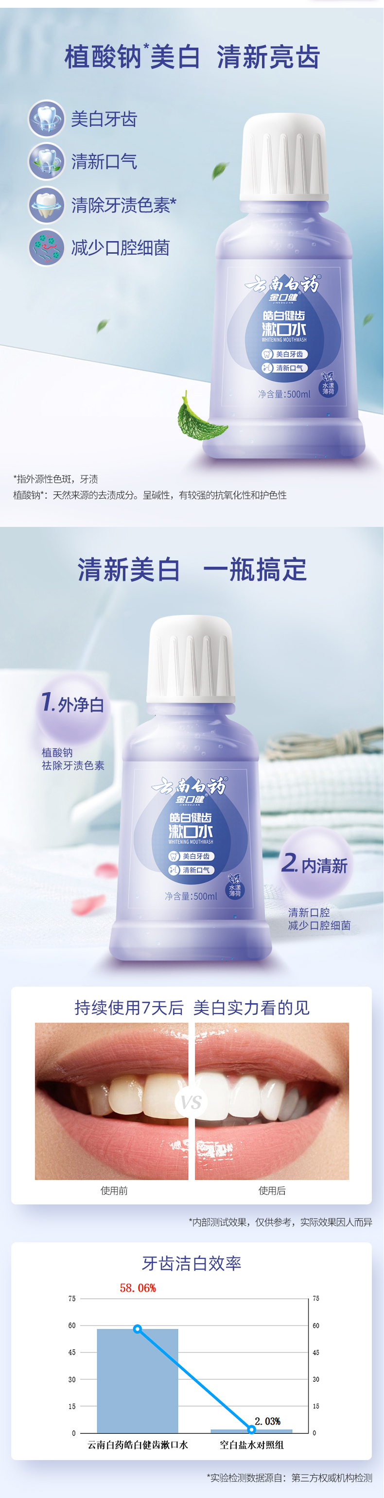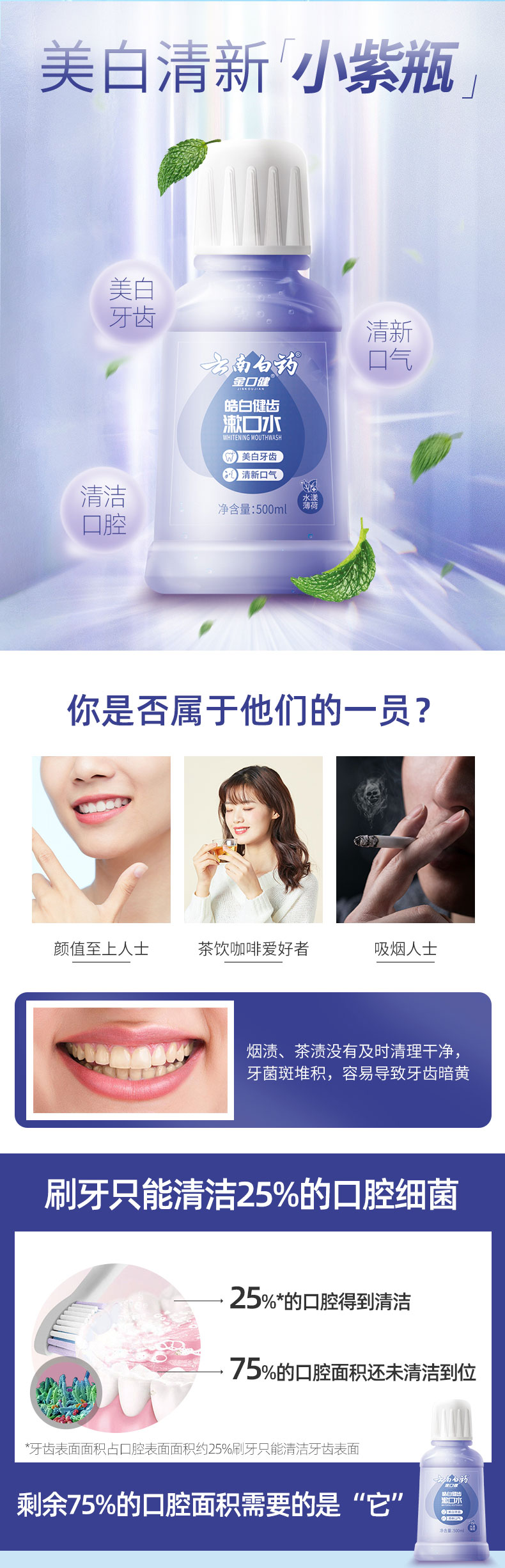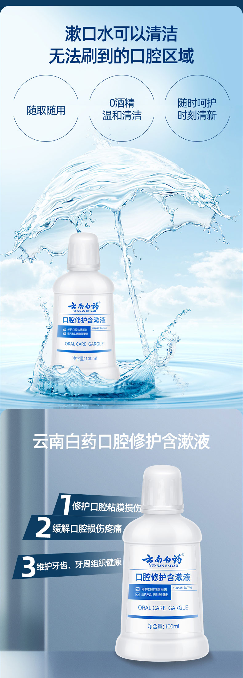 【官方正品】云南白药金口健防蛀固齿漱口水清新口气固齿防蛀精准含氟益生菌
