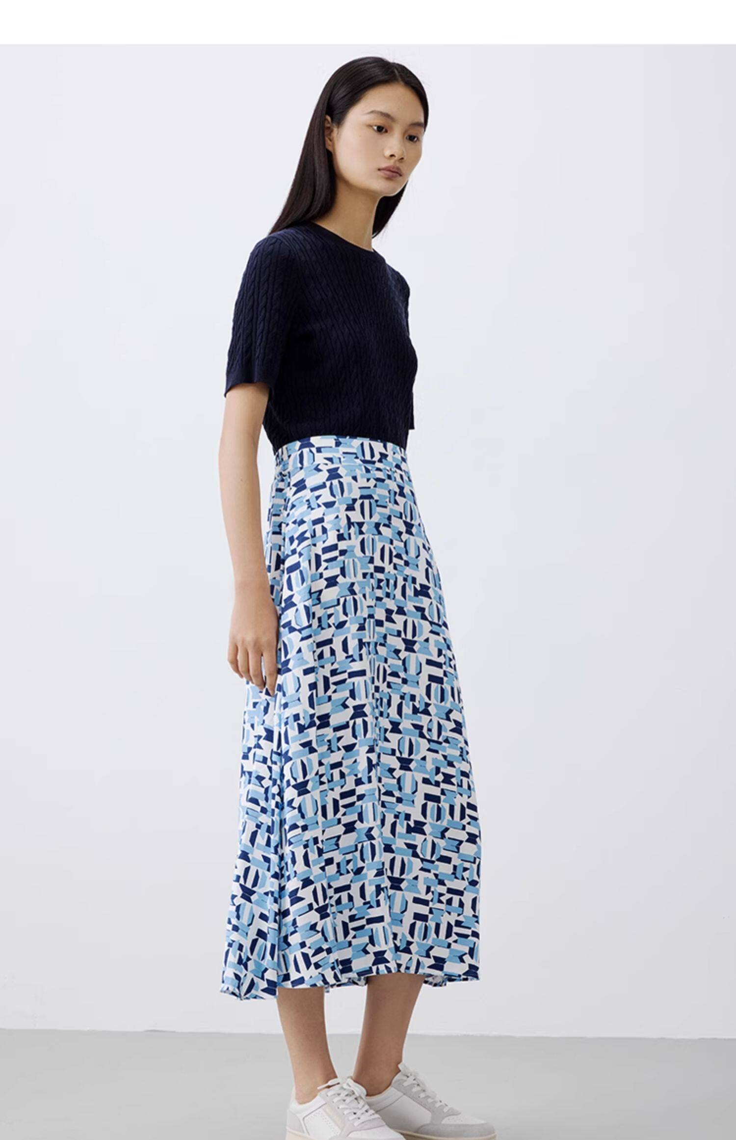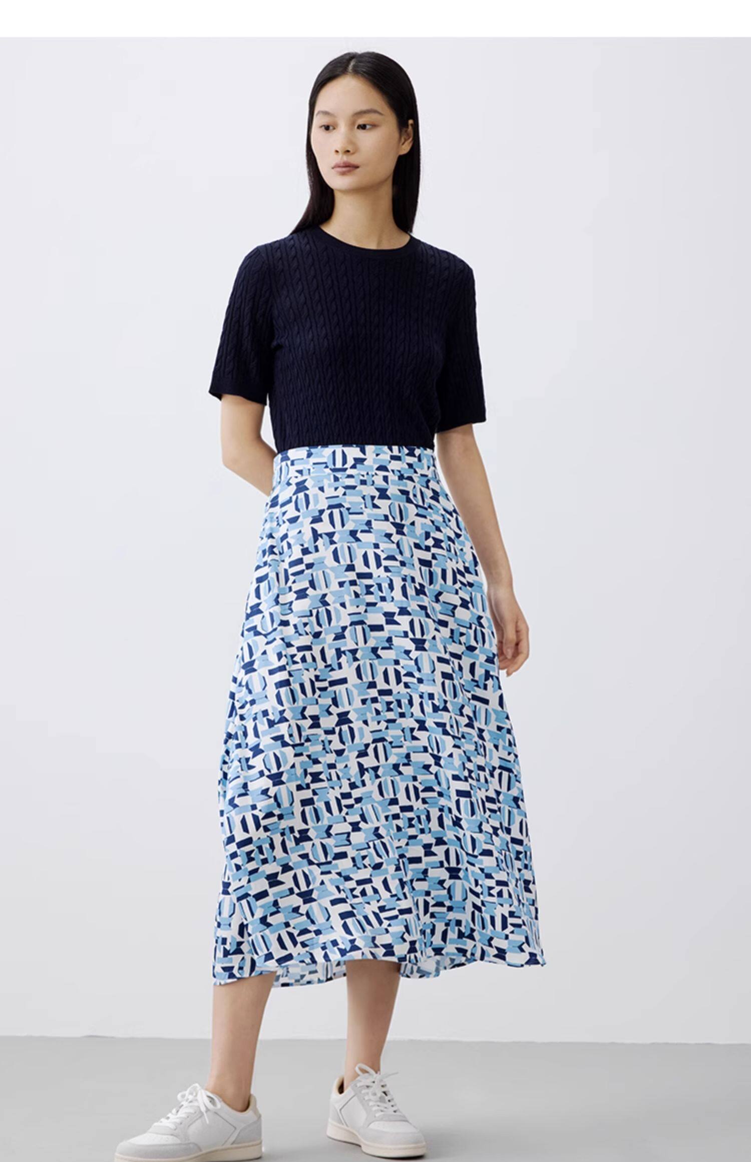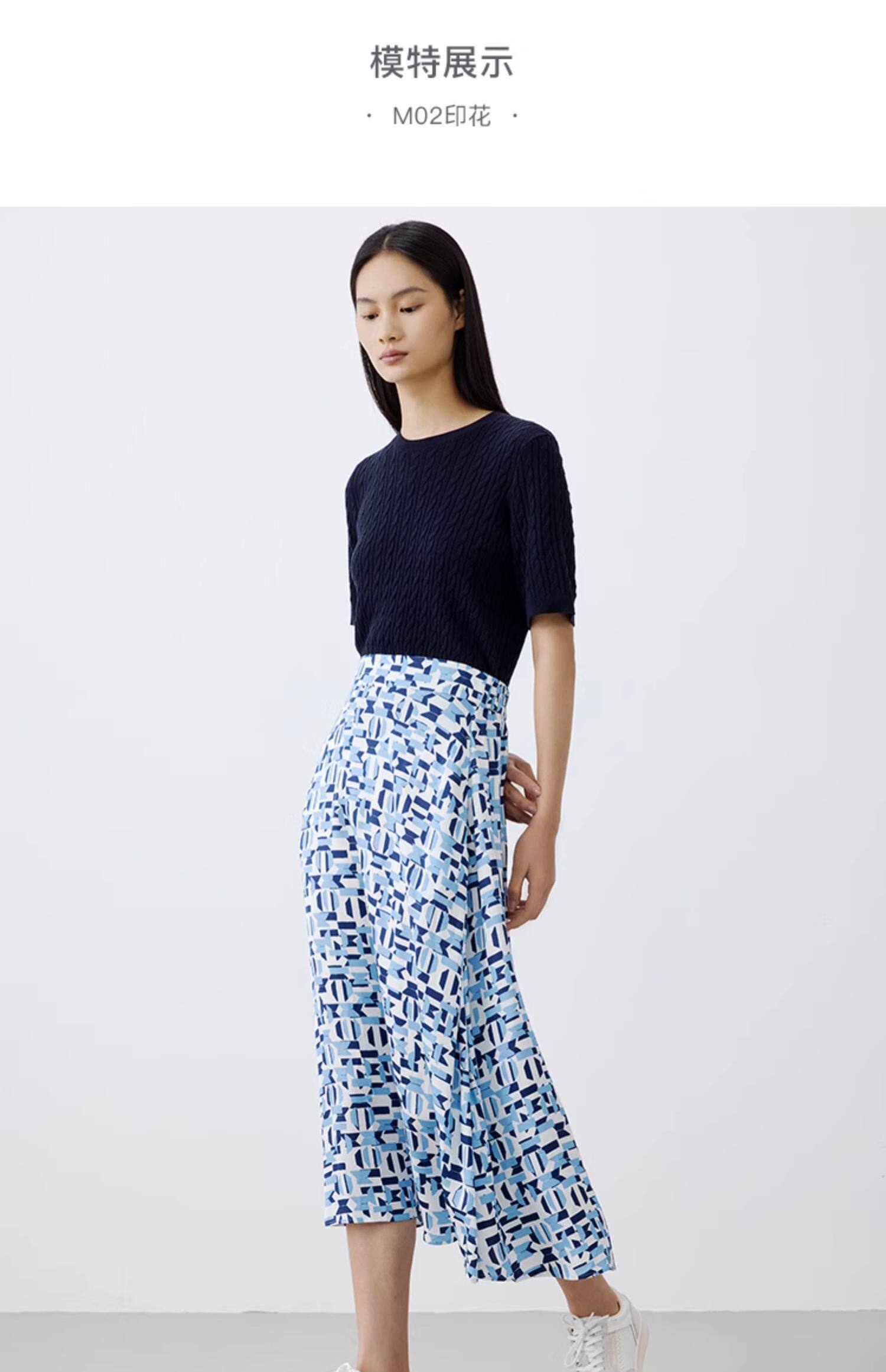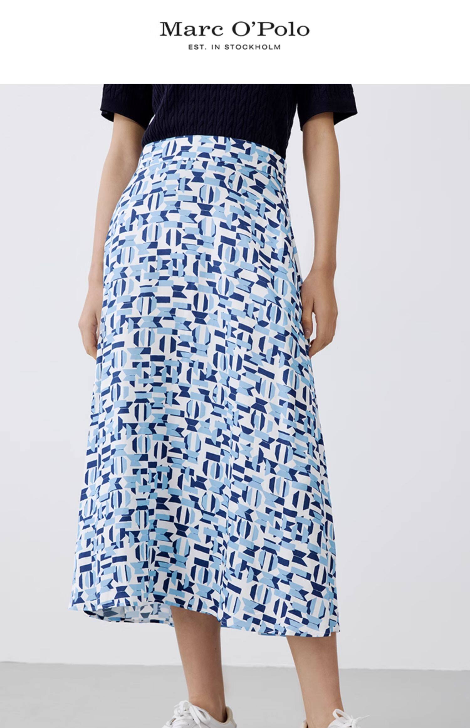 【汤曼妮粉丝专享】MOP 夏季新款时尚薄款透气几何印花长款半身裙