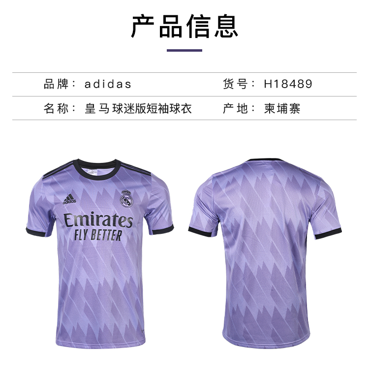 ADIDAS/阿迪达斯 REAL A JSY 22-23皇马客场球迷版短袖球衣H18489