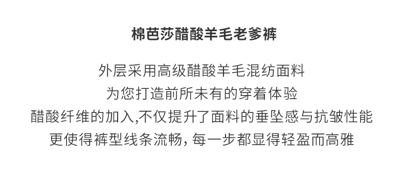 【醋酸羊毛】阿菁娜冬季新款醋酸羊毛老爹裤羊毛混纺面料垂坠抗皱轻盈透气F30D210102