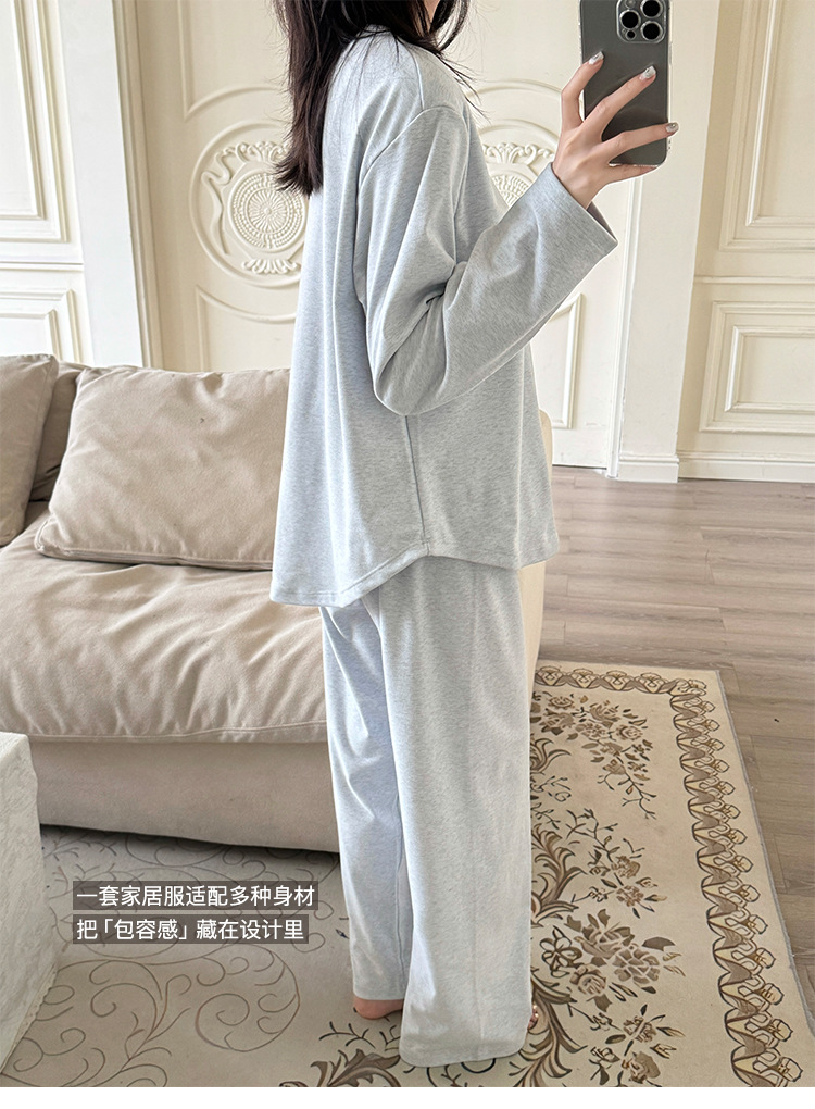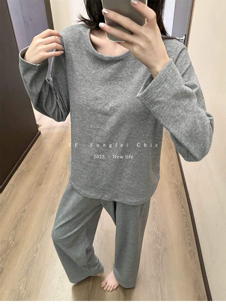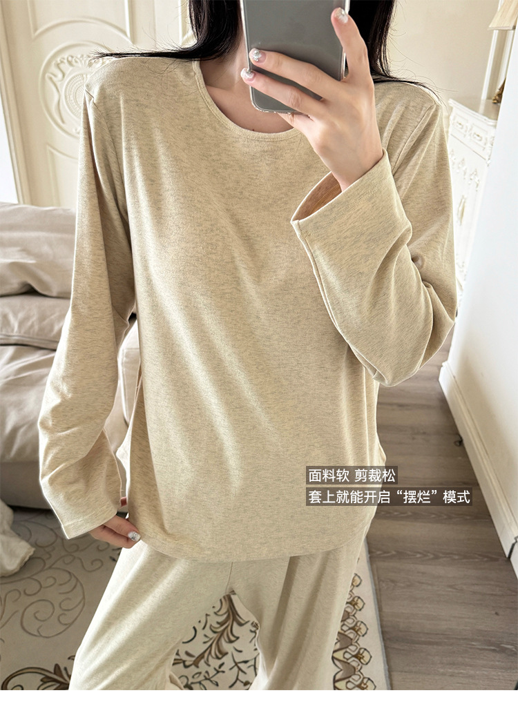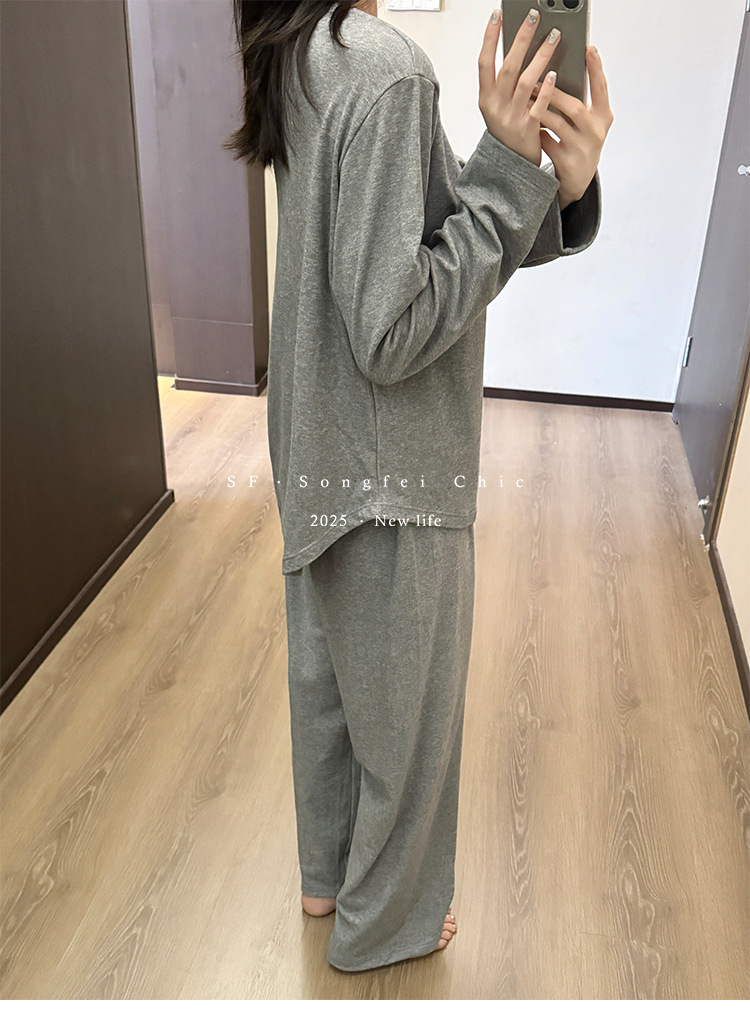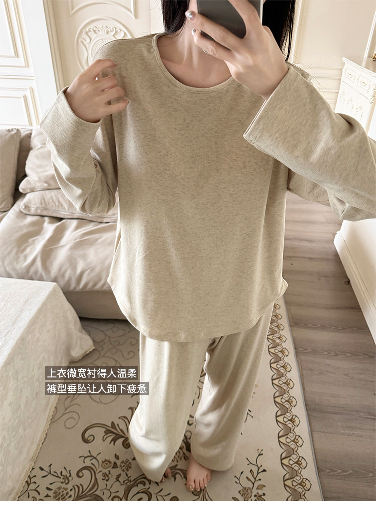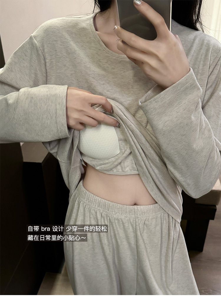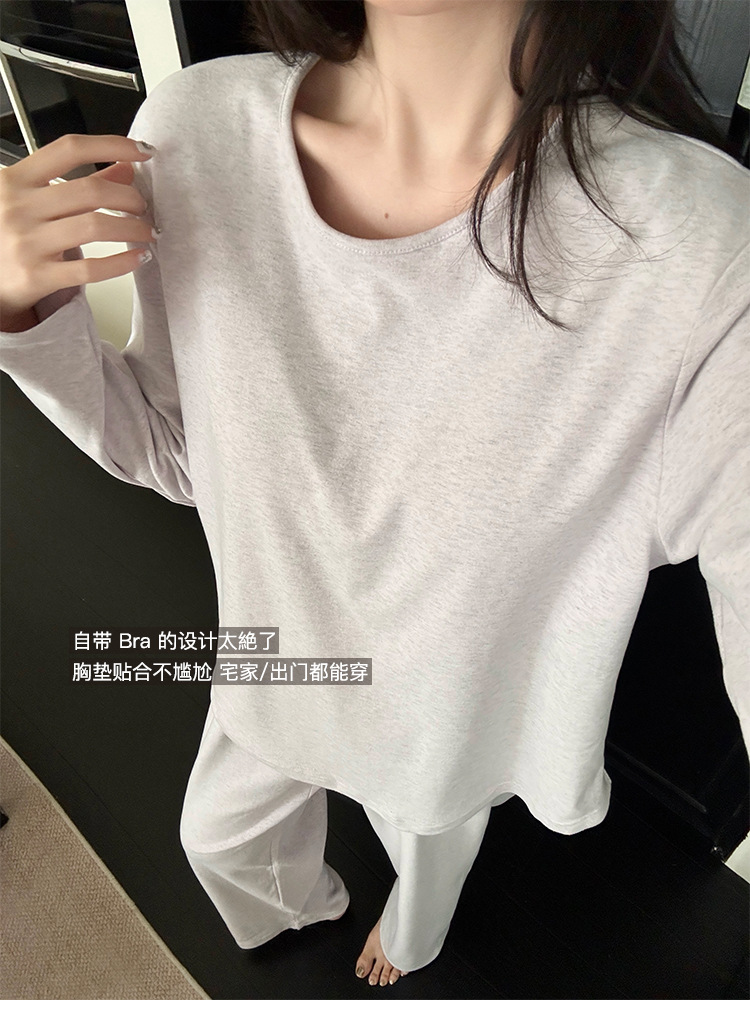 秋冬带胸垫磨毛加厚睡衣套装 可外穿宽松圆领套头显瘦女士家居服
