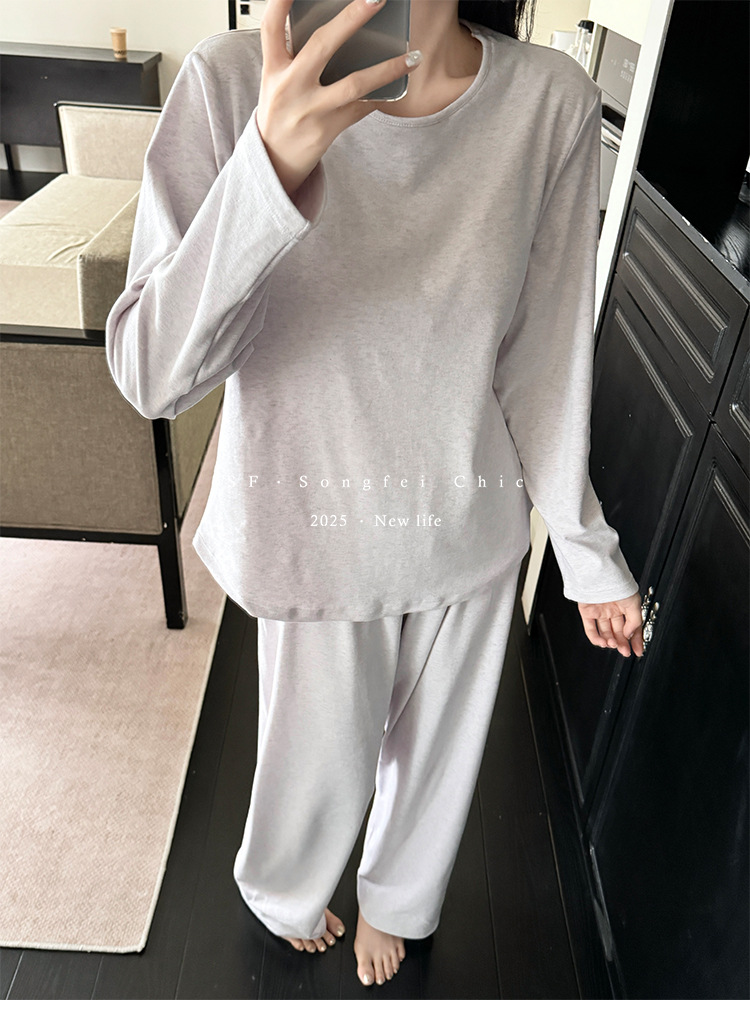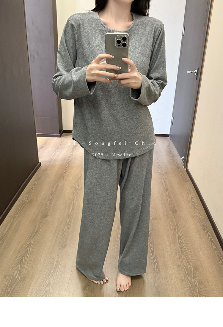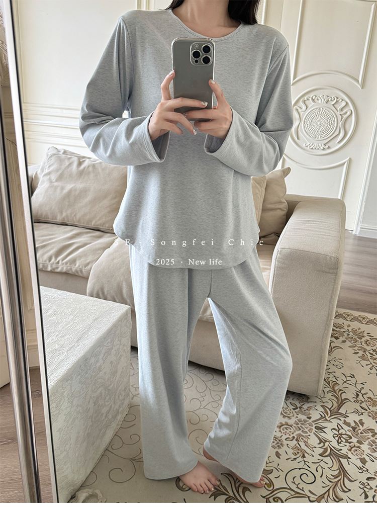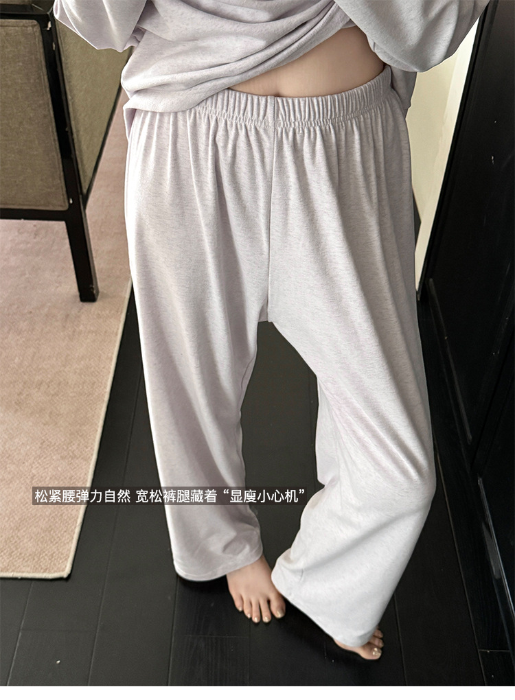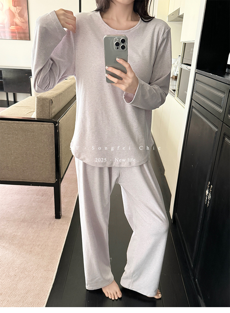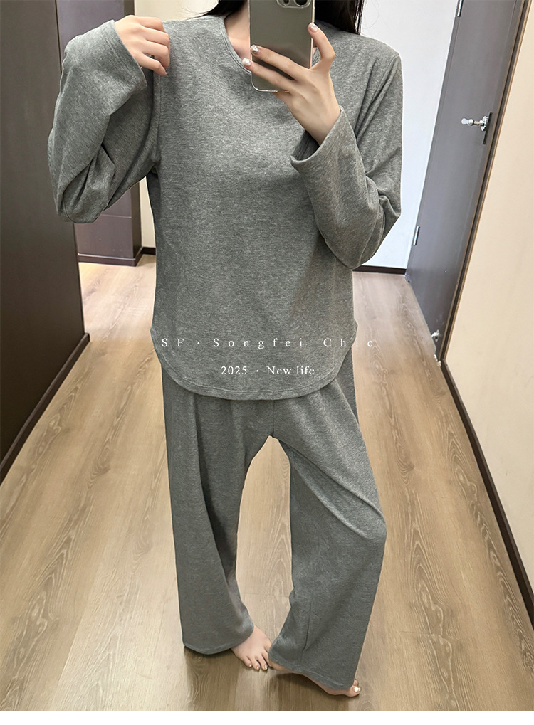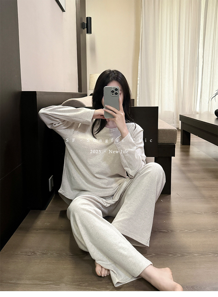 秋冬带胸垫磨毛加厚睡衣套装 可外穿宽松圆领套头显瘦女士家居服