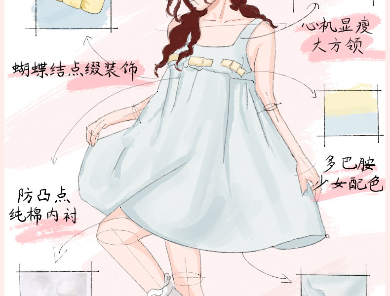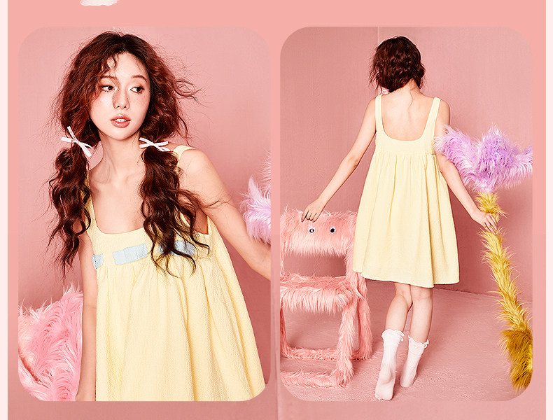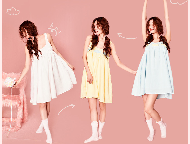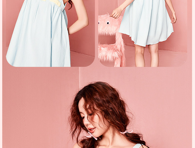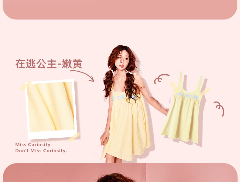 好奇蜜斯吊带睡裙女家居服甜美舒适春夏纯欲风可爱可外穿纯棉-梅宝