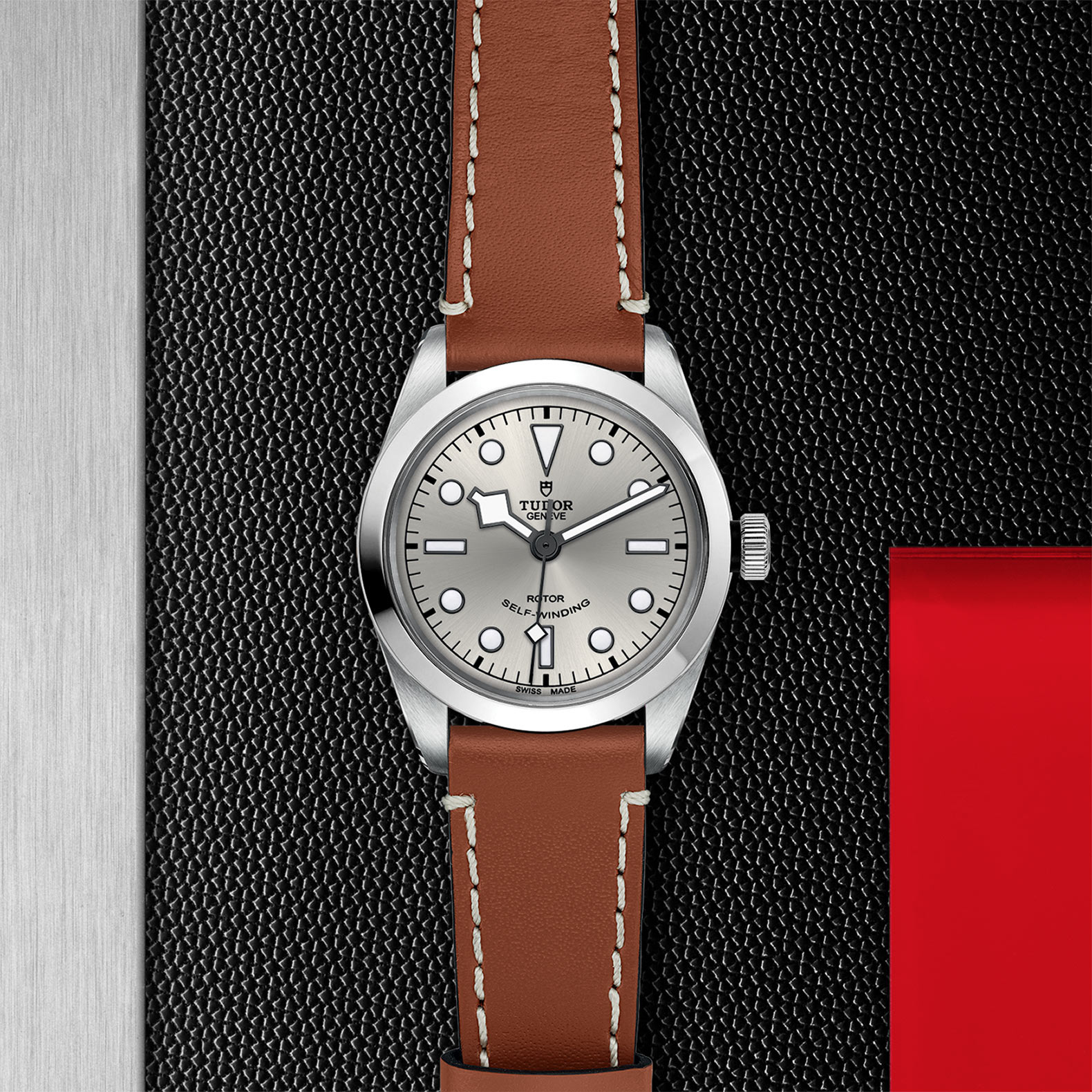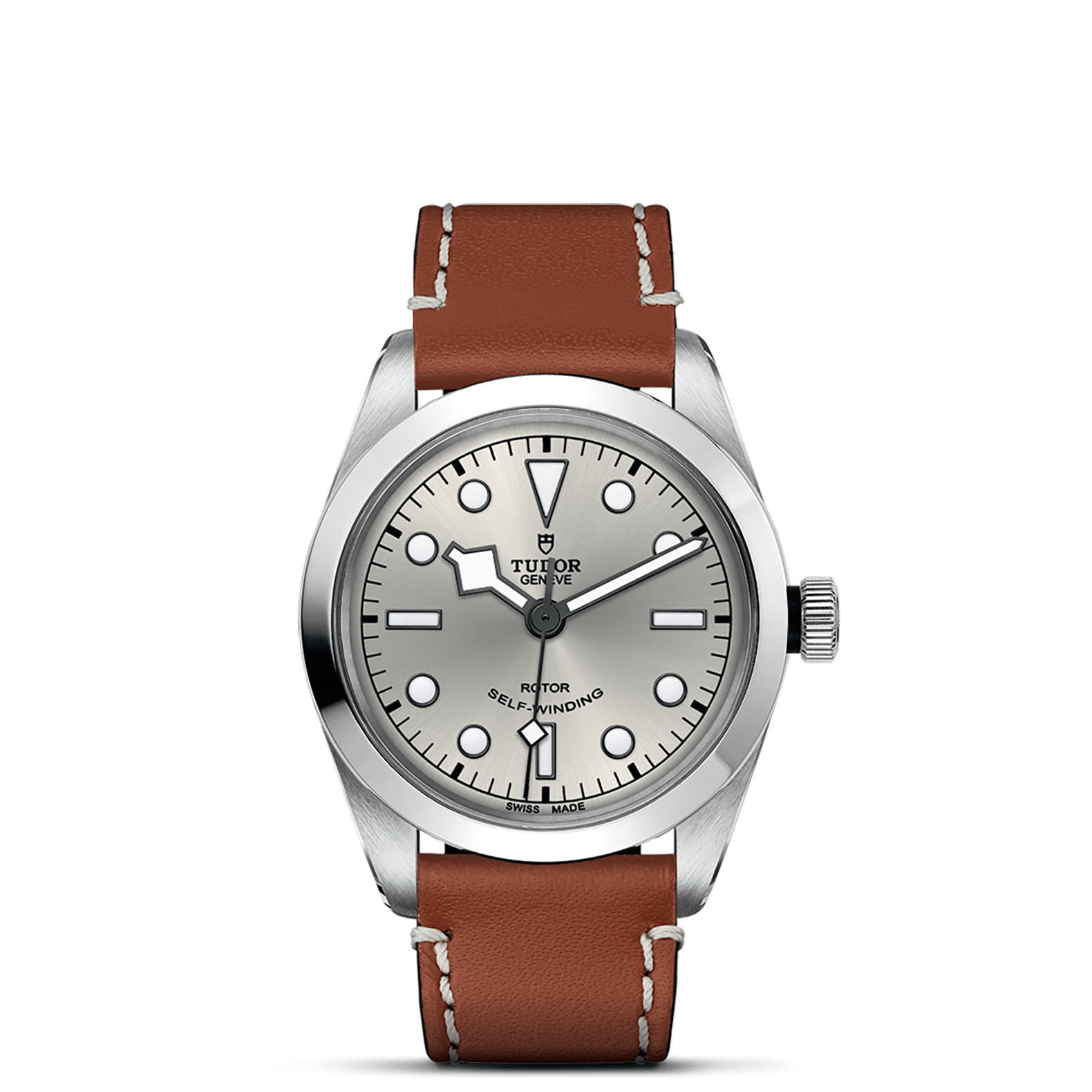 不锈钢旋入式上链表冠,饰以浮雕帝舵表玫瑰标志,配黑色阳极氧化铝上链表冠轴