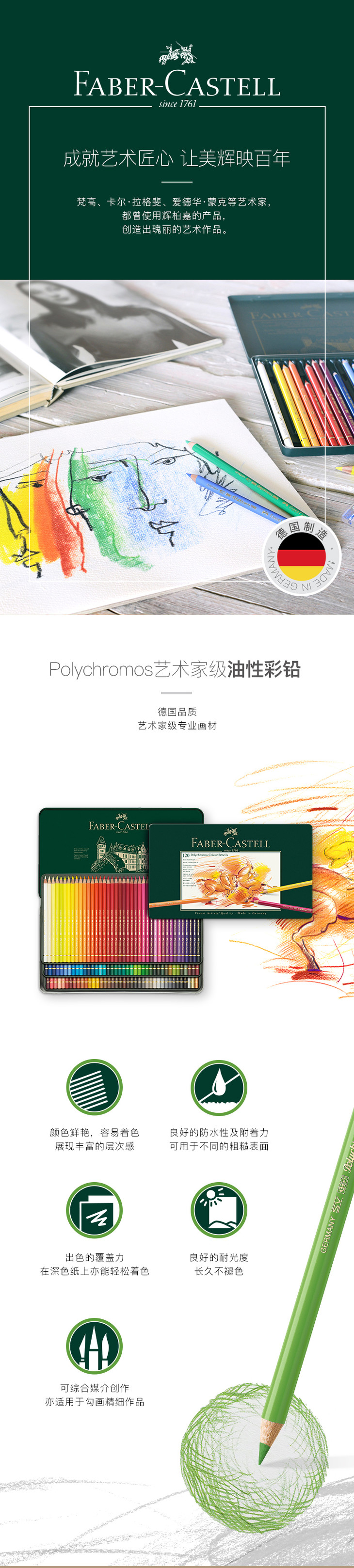 德国辉柏嘉 绿系列 艺术家级彩铅 水溶/油性 12/24/36/60/72/120色