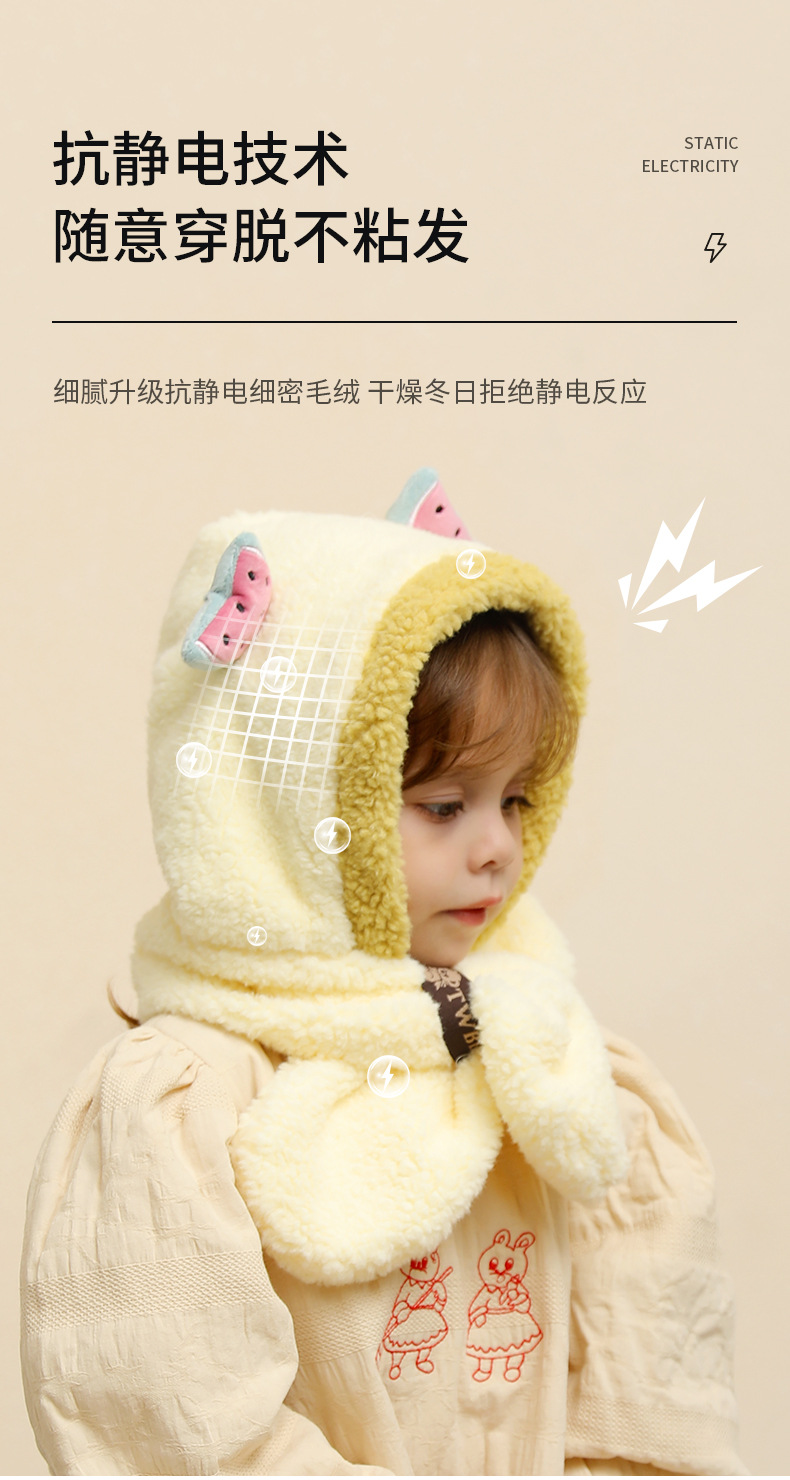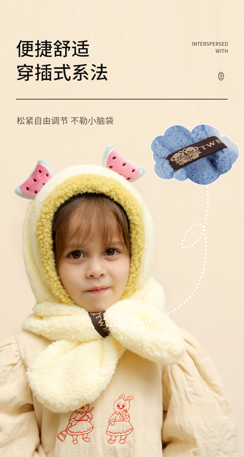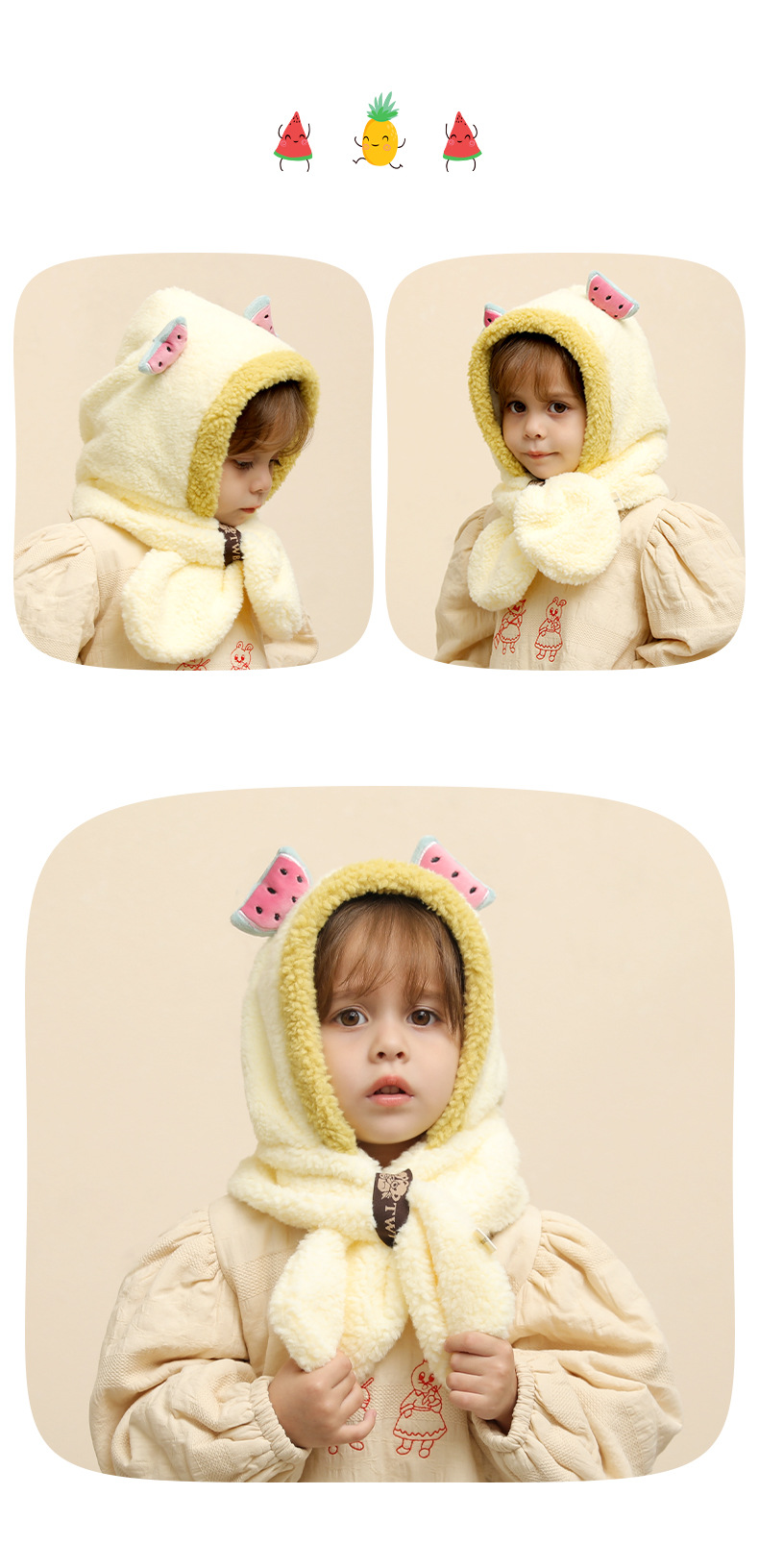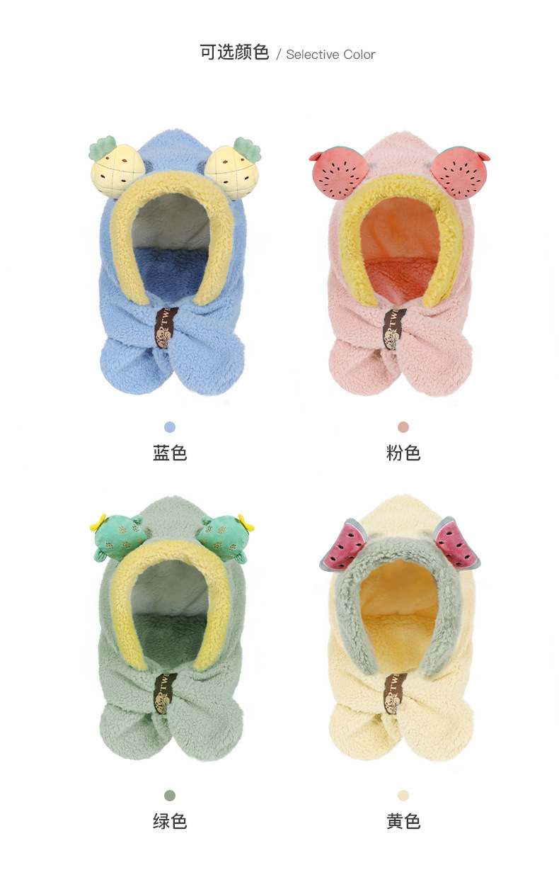 【水果造型防风护耳一体帽】3-12岁耳朵防风帽护耳帽可爱秋冬毛绒立体可爱男童女童围巾围脖护耳一体帽婴幼儿园宝宝小学生防风保暖帽子套装