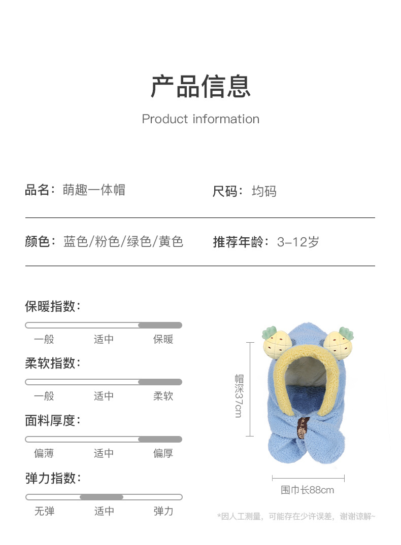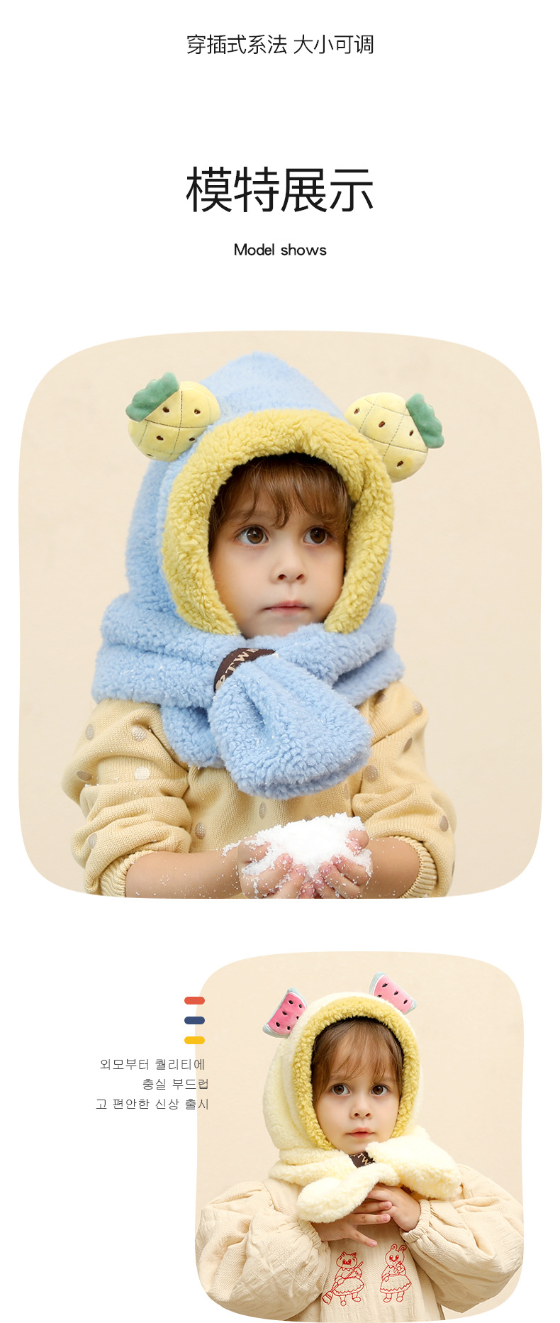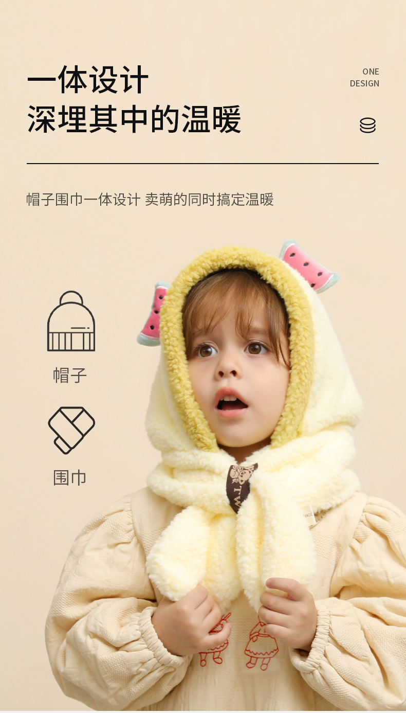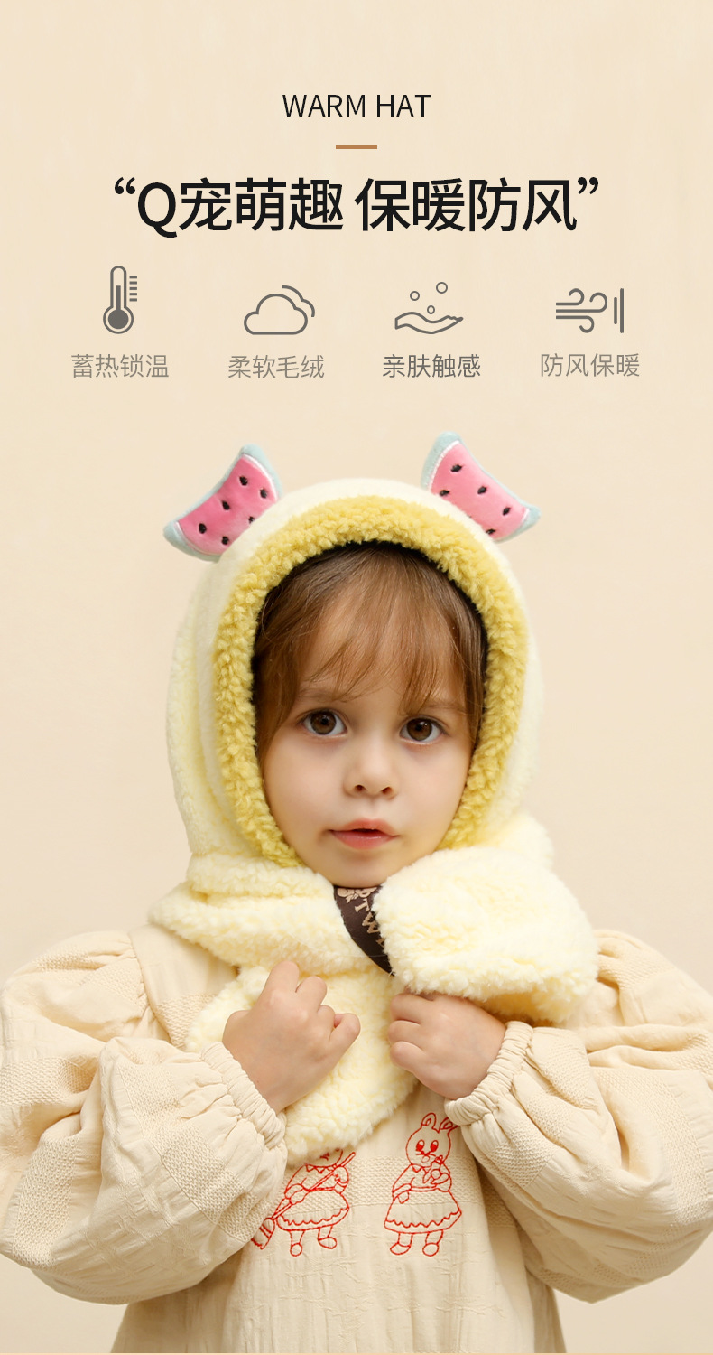 【水果造型防风护耳一体帽】3-12岁耳朵防风帽护耳帽可爱秋冬毛绒立体可爱男童女童围巾围脖护耳一体帽婴幼儿园宝宝小学生防风保暖帽子套装