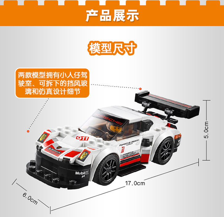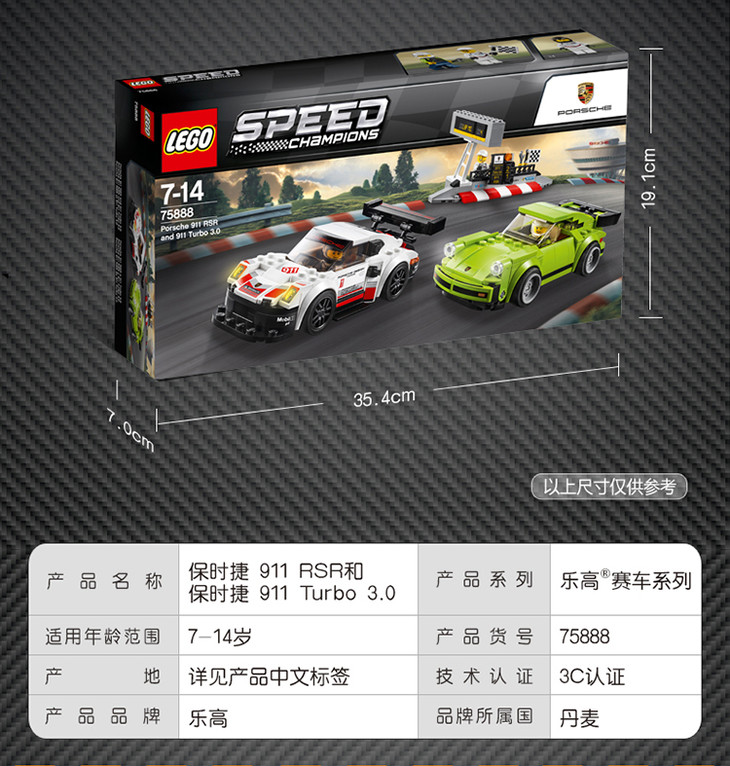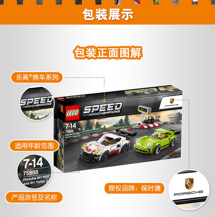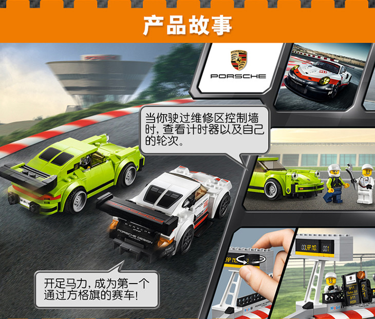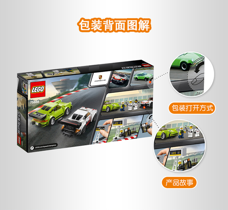 乐高 LEGO 保时捷 911 RSR和保时捷 911 Turbo 3.0 LEGC75888 赛车系列SpeedChampions 适用年龄7Y-9Y 拼插积木益智玩具