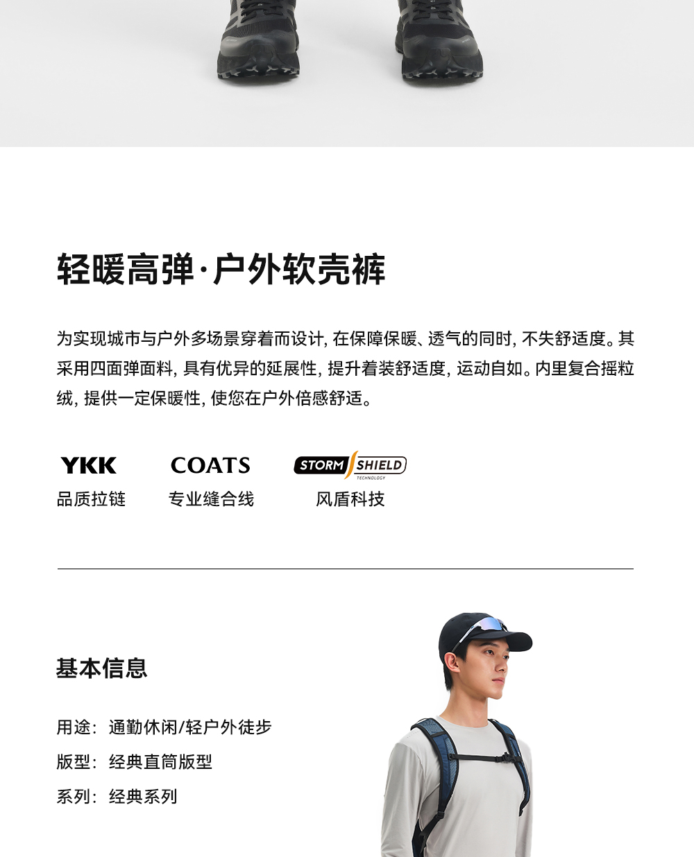 伯希和软壳裤男新款户外防风防泼水徒步登山裤子高弹舒适运动长裤