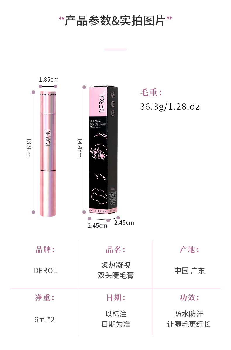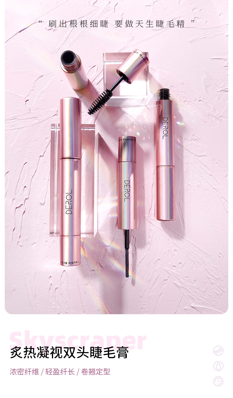 好用到炸裂~爆款DEROL双头睫毛定型打底膏 防水不易晕染 浓密卷翘睫毛膏