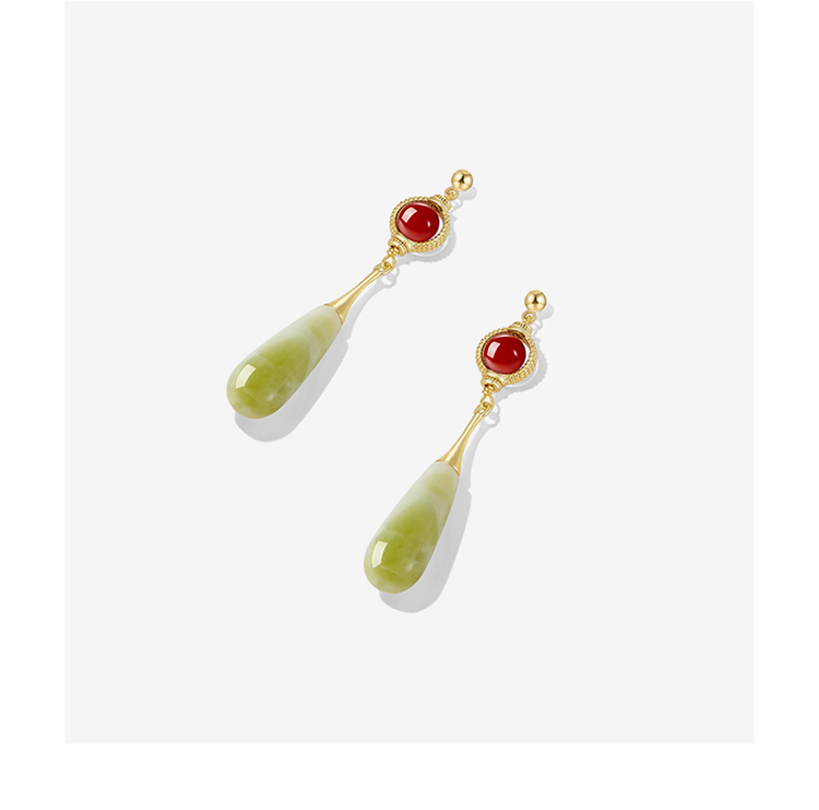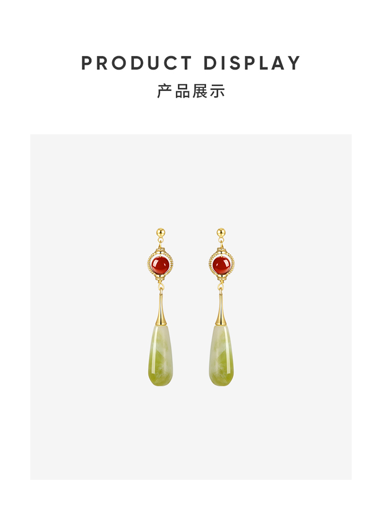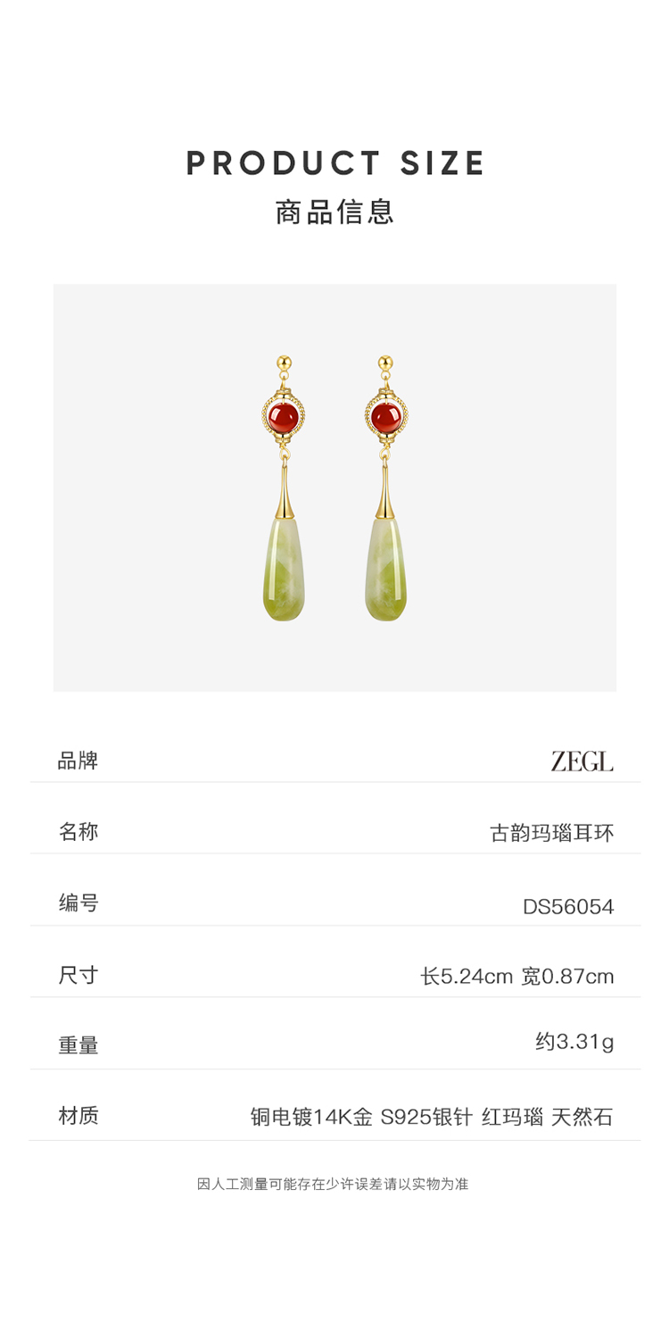 ZEGL新中式红玛瑙耳环女2024新款爆款天然石复古耳钉925银针耳饰