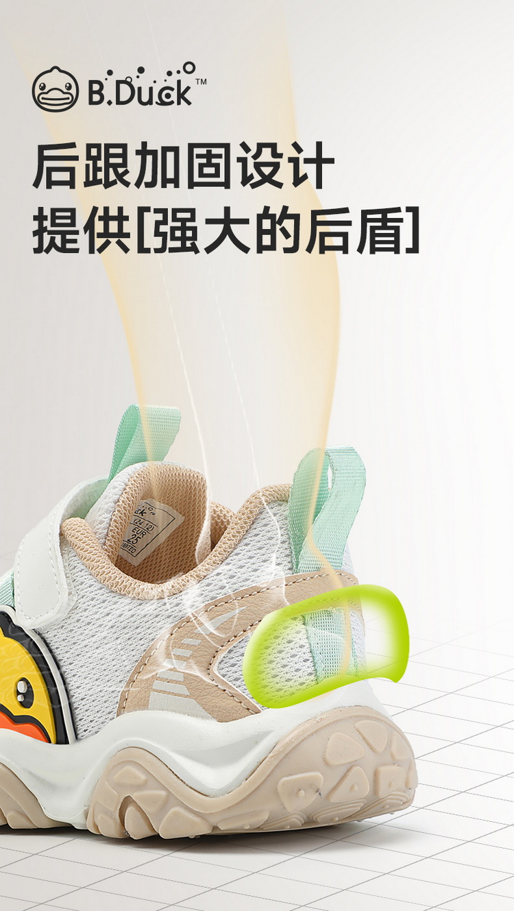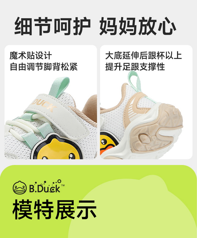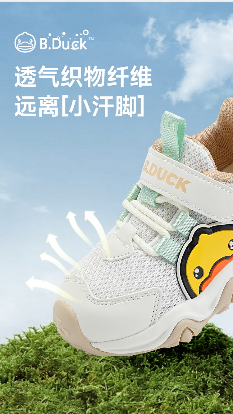B.Duck小黄鸭童鞋儿童网面春季男女童户外魔术贴运动鞋24-30 B1686863