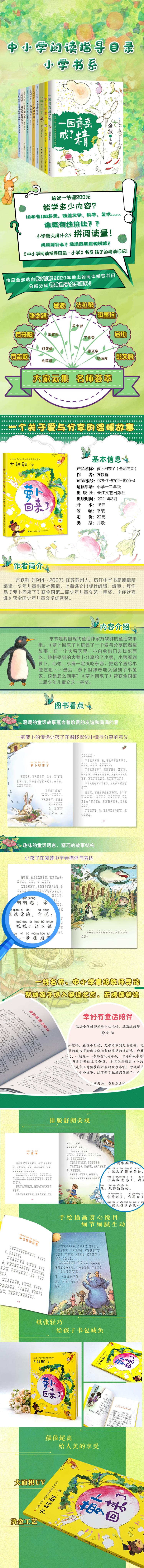 ★入选《中小学生阅读指导目录》1-2年级指导书目★一个关于爱与分享的温暖故事★《萝卜回来了》曾获全国第二届少年儿童文艺一等奖★名校名师倾情导读★全彩注音无障碍阅读★环保纸印刷,品质保障
