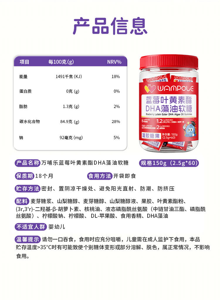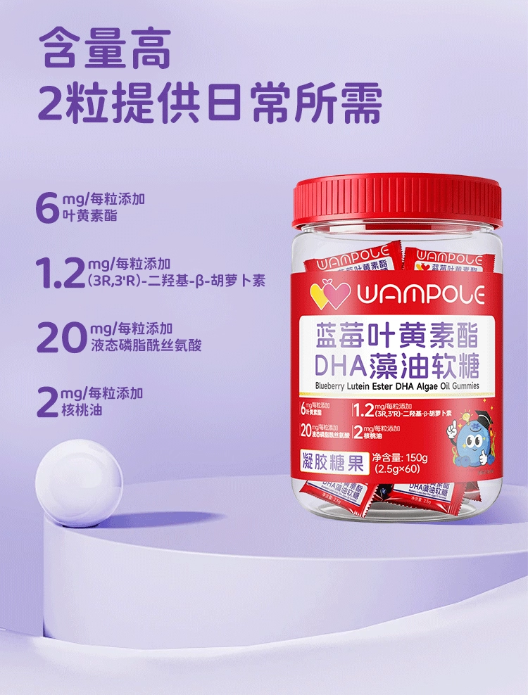 万哺乐 蓝莓叶黄素酯DHA藻油软糖